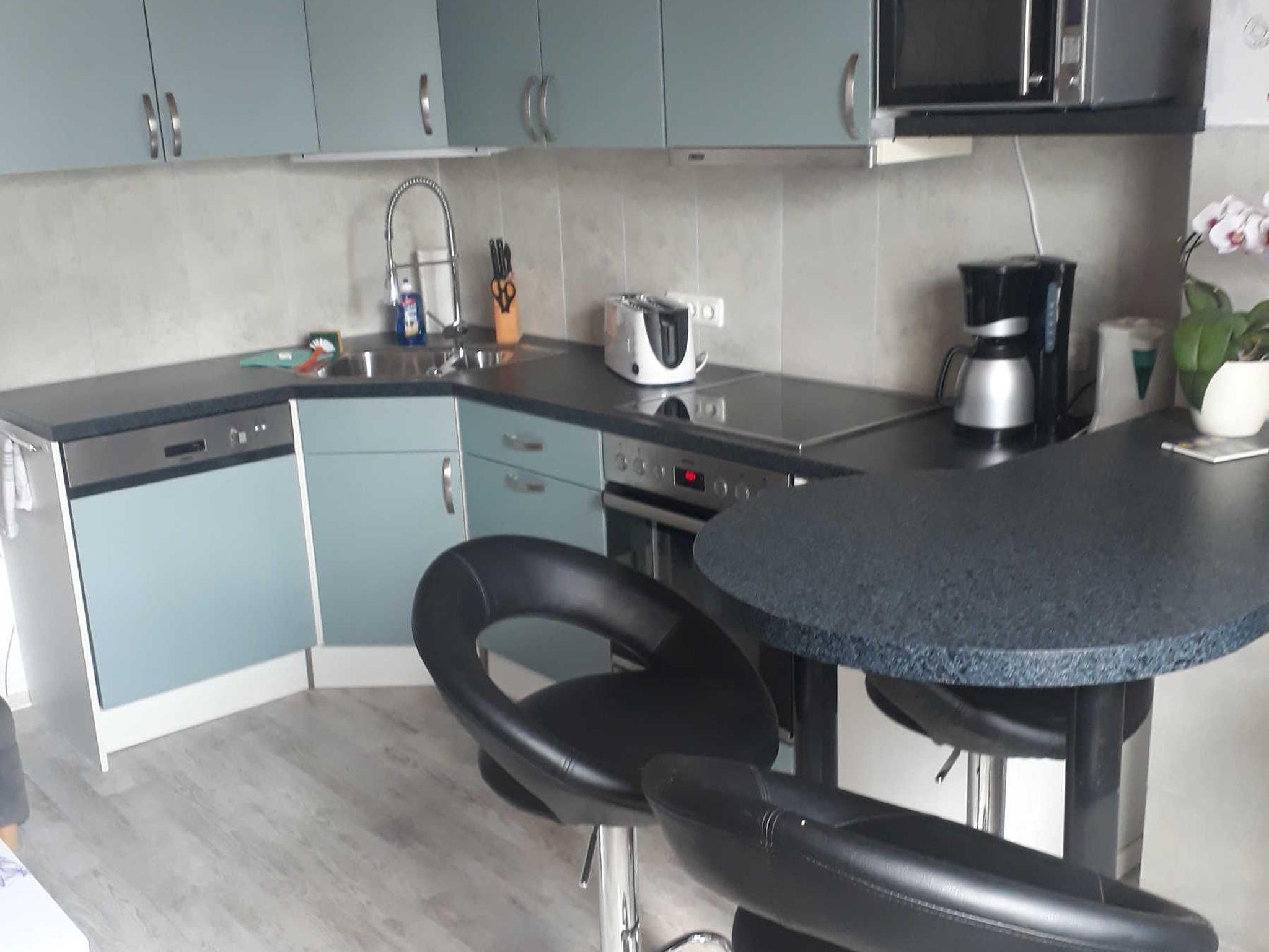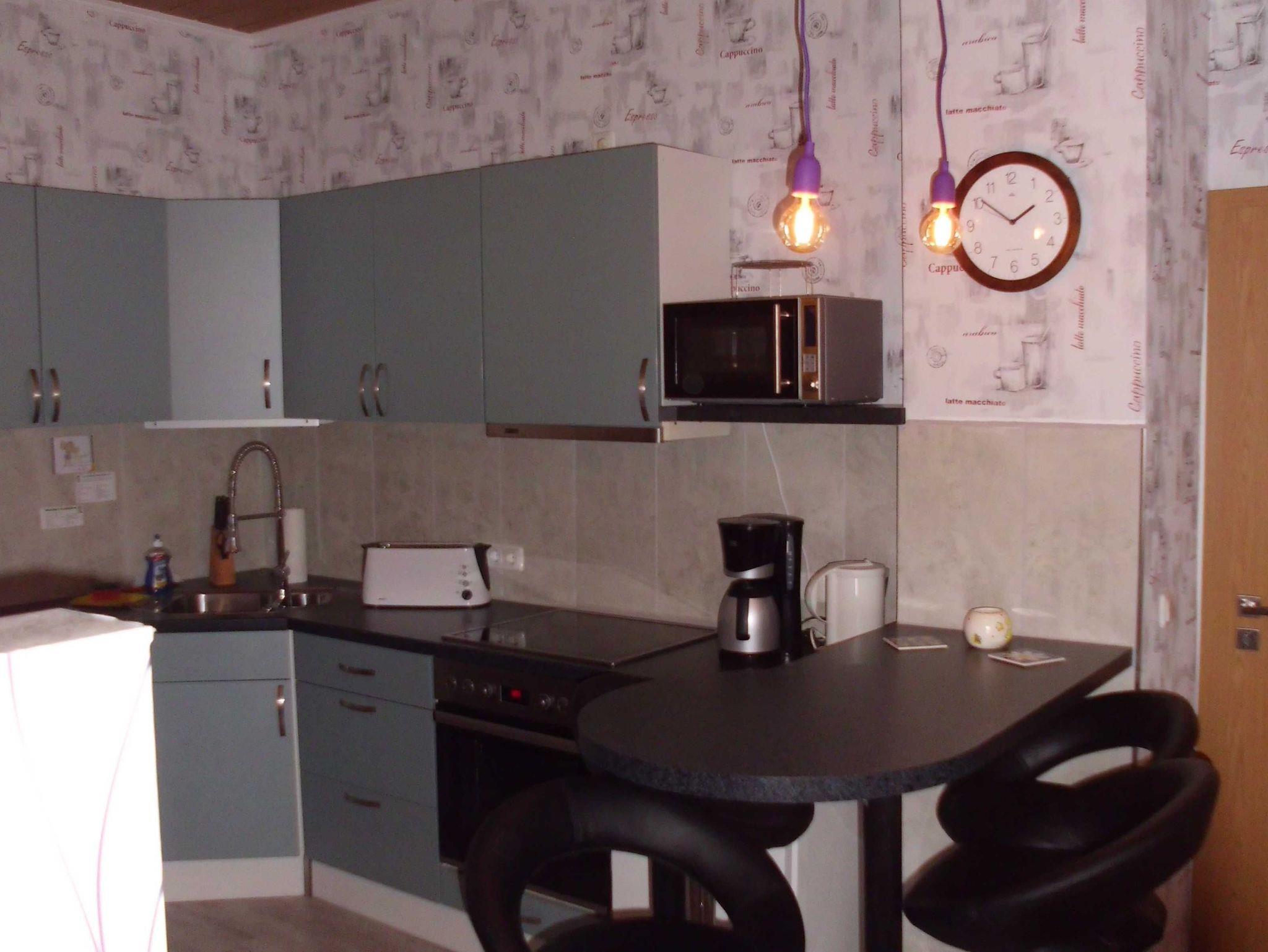 Die Küche ist mit Induktionsherd, Mikrowelle , Geschirrspülmaschine, Kühlschrank mit Gefrierfach, Kaffeemaschine, Toaster und Wasserkocher,Geschirr, Besteck und Gläsern bestens bestückt.