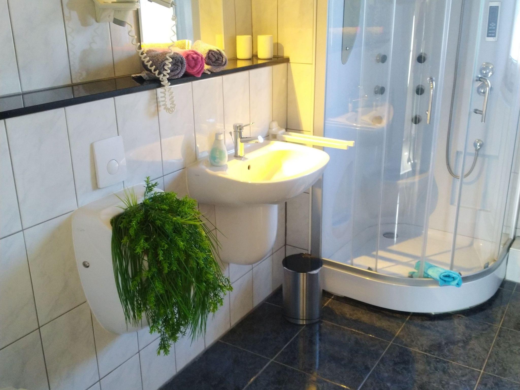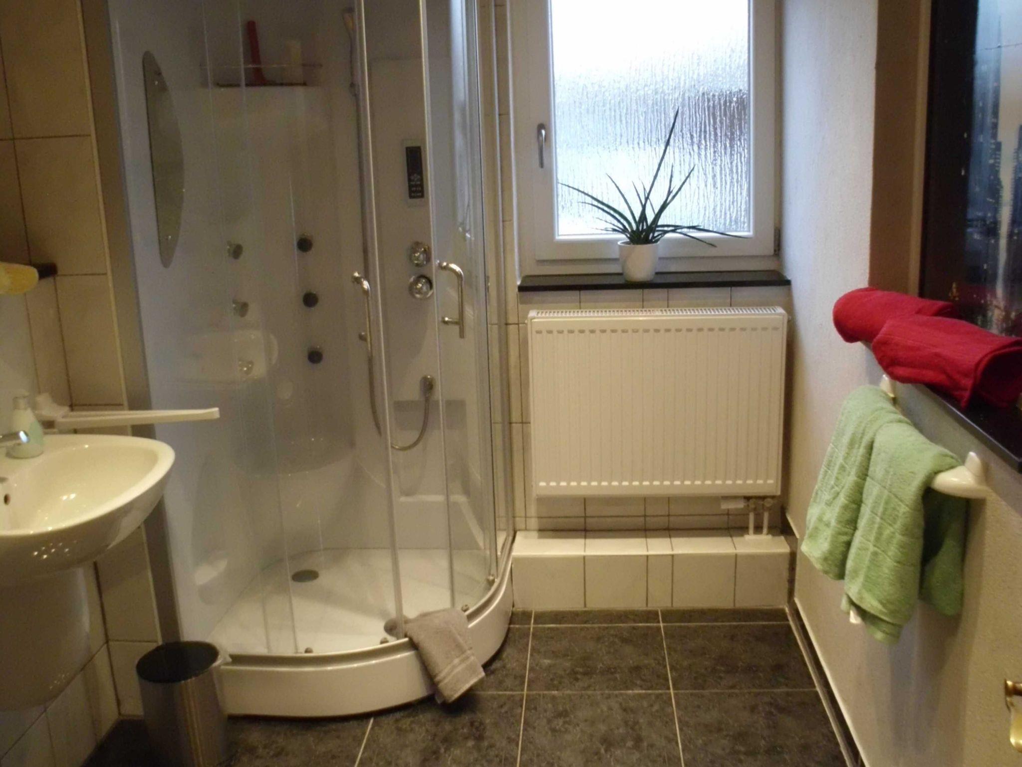 Das Bad ist mit einer großzügigen Dusche ausgestattet.