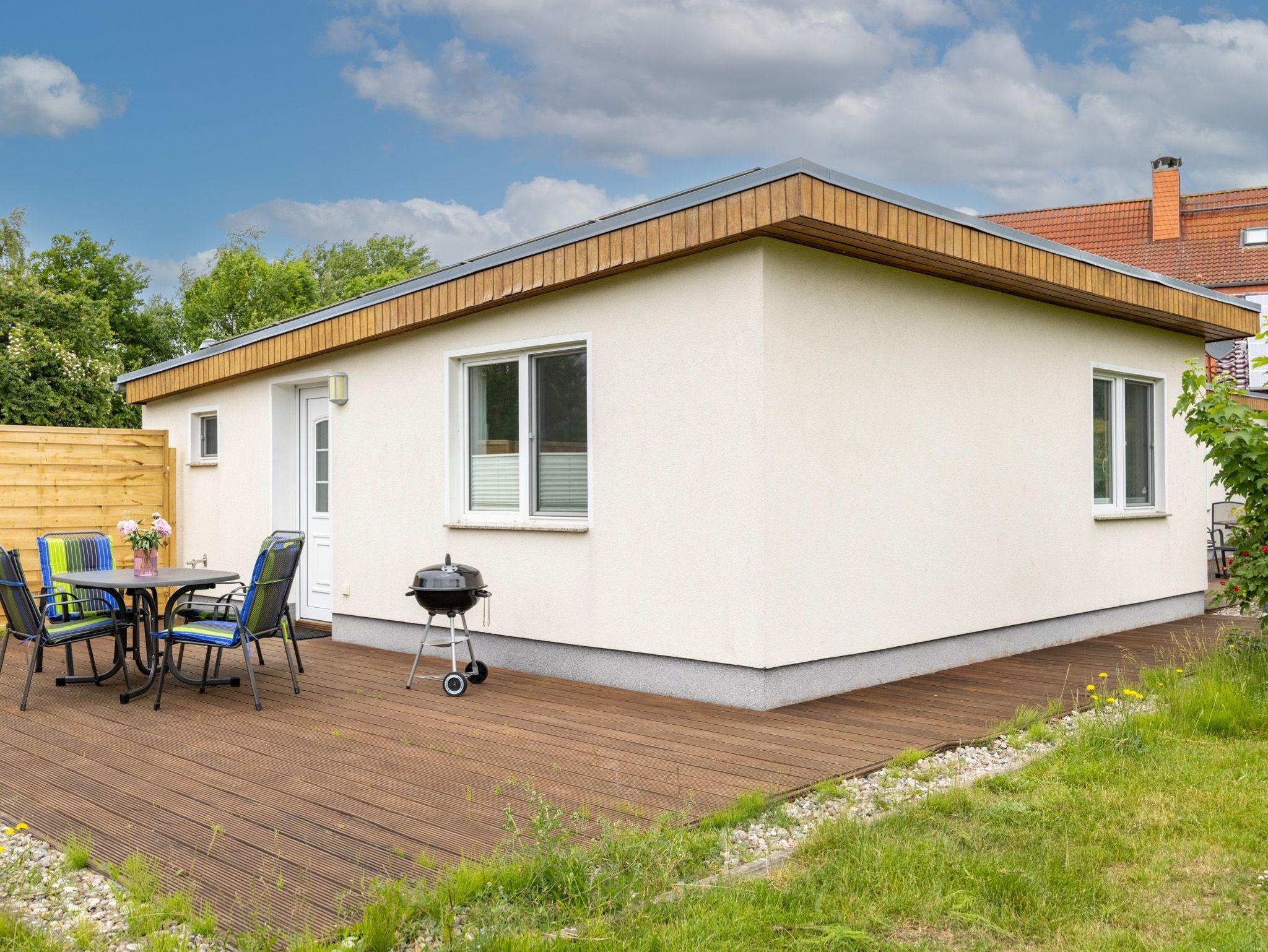 Das Doppelferienhaus Finn im Bungalowstil bietet auf 45 qm ebenerdig Platz für bis zu 4 Gäste.