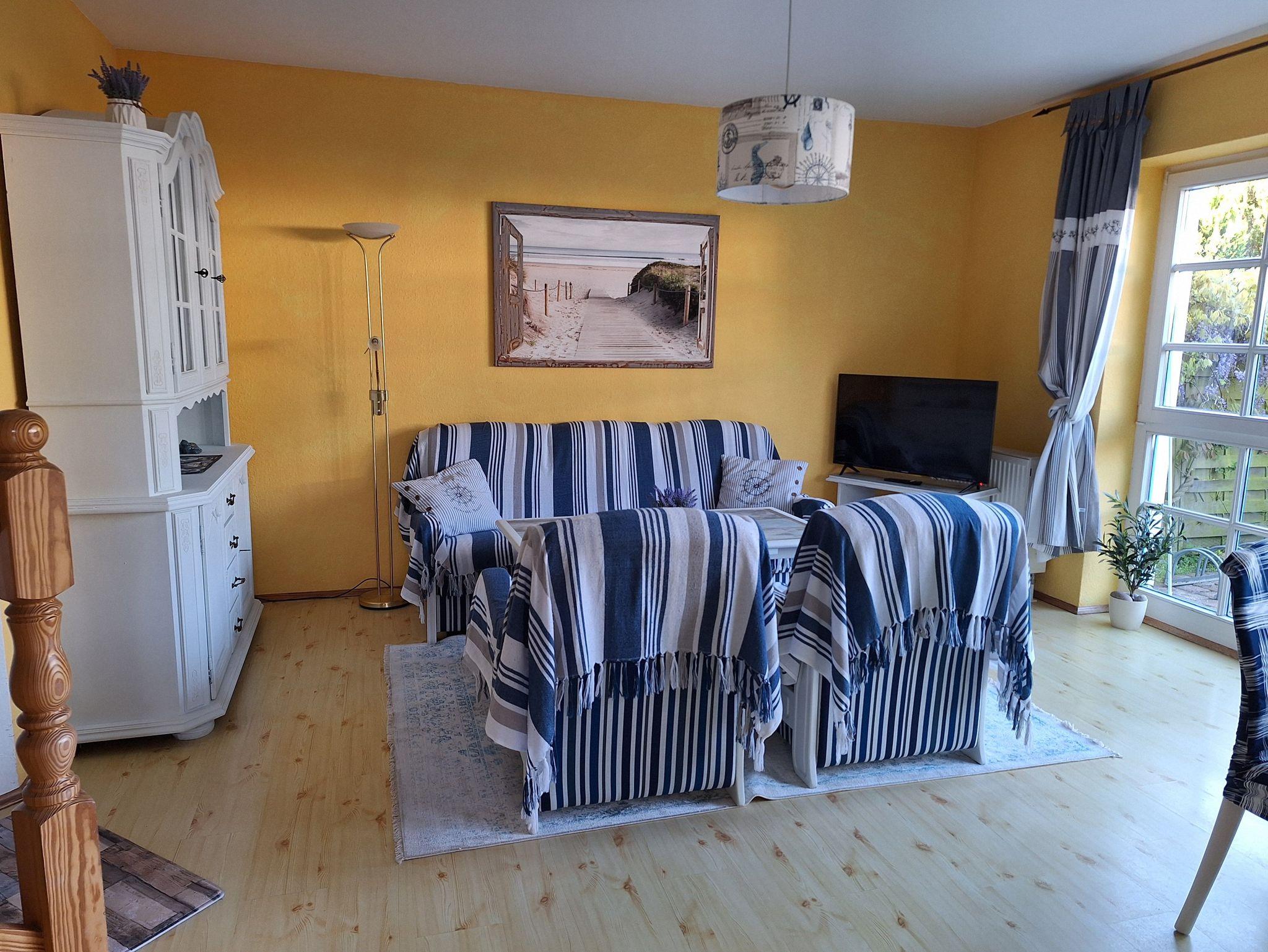 Das reetgedeckte Ferienhaus (70 m²) besteht aus einem Schlafzimmer mit Bad in der oberen Etage, Wohnzimmer und Küche. Gäste-WC und Flur befinden sich in der unteren Etage. Das Ferienhaus ist ruhig gelegen und nur etwa 10 Minuten vom weißen Ostseestrand entfernt. Weiterhin gibt es eine große Terrasse mit Gartenmöbeln sowie einen hauseigenen Parkplatz. Bettwäsche ist im Preis enthalten, Handtücher sind bitte vom Gast mitzubringen!