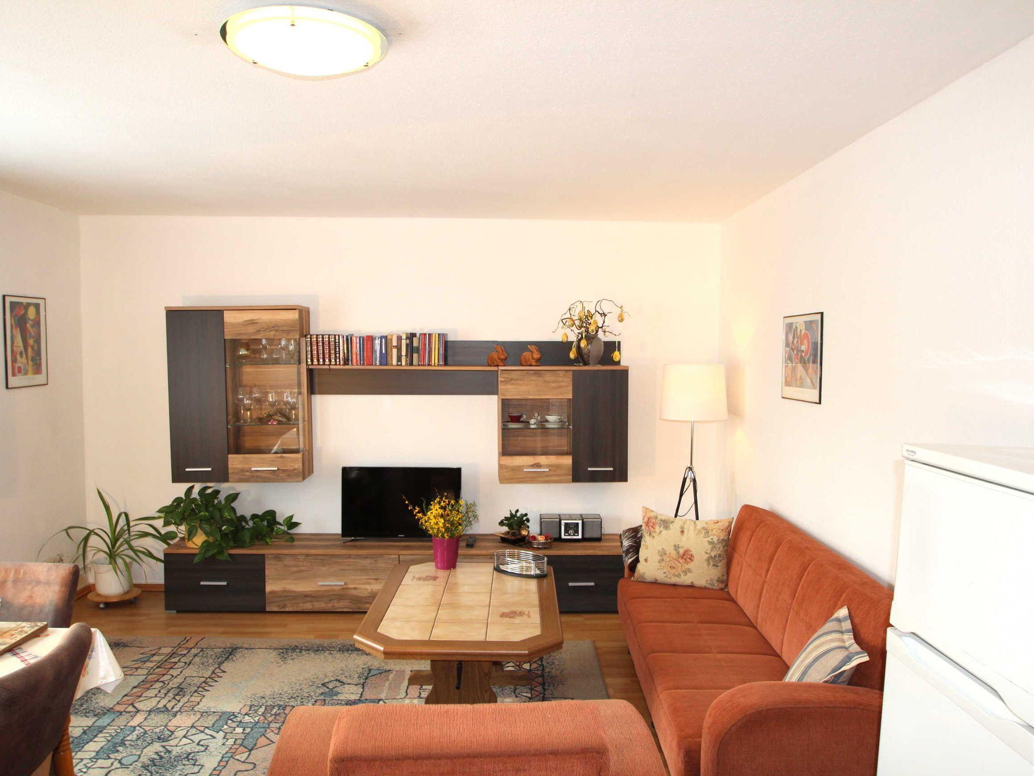Die Ferienwohnung besteht aus einem kombinierten Wohn- und Küchenbereich, einem separaten Schlafzimmer mit Zusatz-Aufbettung und einem separaten Badezimmer mit Dusche und WC.