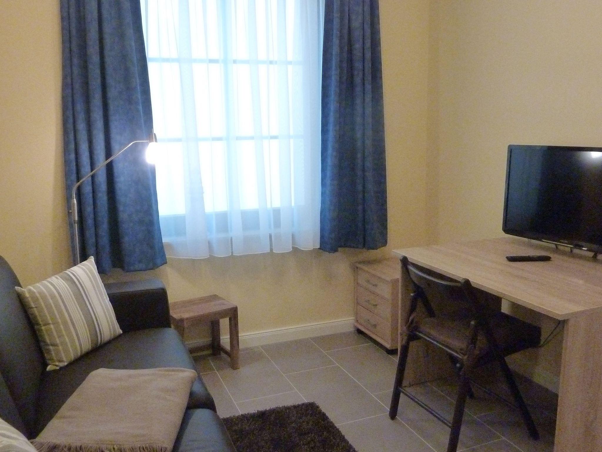 Die große Ferienwohnung verfügt über ein schönes Schlafzimmer mit erhöhtem Doppelbett. Und ein weiteres kleines Schlafzimmer mit ausziehbarem Sofa auf dem zwei Personen schlafen können und Schreibtisch. WLAN-Anschluss sowie ein zweiter Fernseher sind vorhanden.