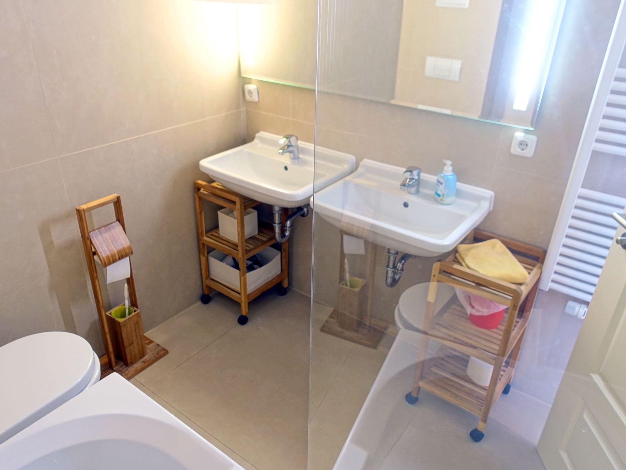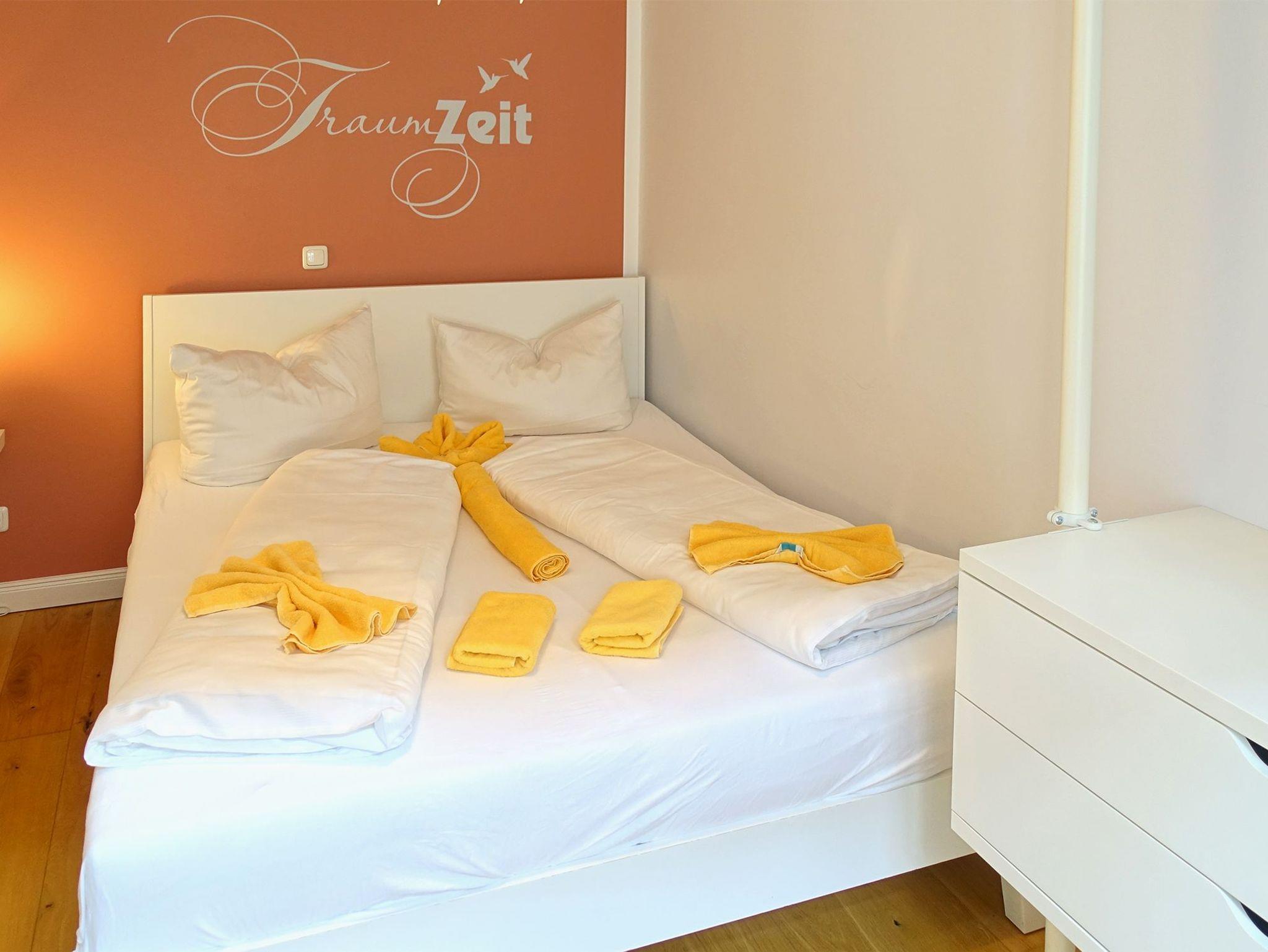 Die Ferienwohnung verfügt über ein schönes Schlafzimmer mit einem 1,60 Meter großem Doppelbett sowie einem großzügigen Badezimmer mit Badewanne.