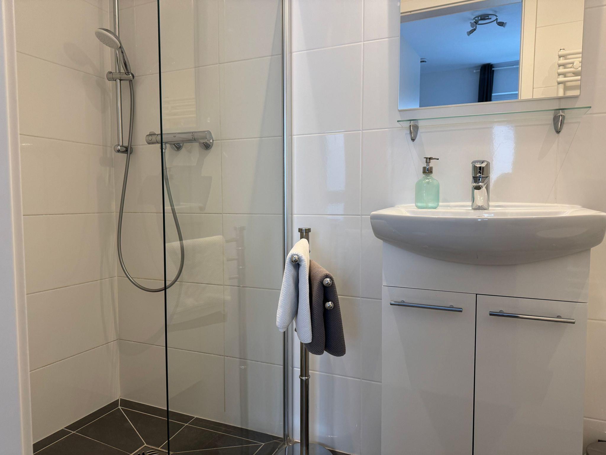 Das Apartment in Warnemünde ist für bis zu drei Personen geeignet. Es bietet Ihnen ein separates Schlafzimmer einen offenen Wohn- und Küchenbereich sowie ein Badezimmer mit Dusche/WC. Im Wohnbereich kann aufgebettet werden. Wlan ist in der kompletten Unterkunft verfügbar und im Mietpreis integriert. Handtücher und Bettwäsche sind ebenfalls vorhanden und inklusive.