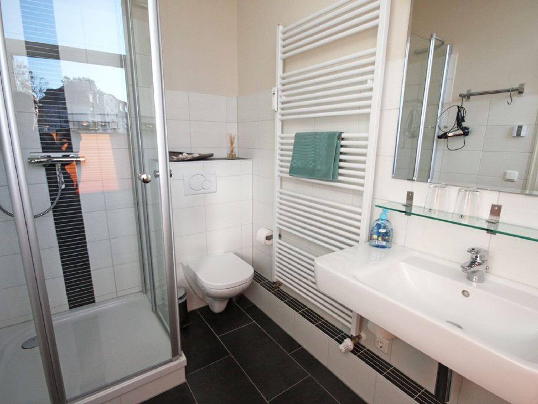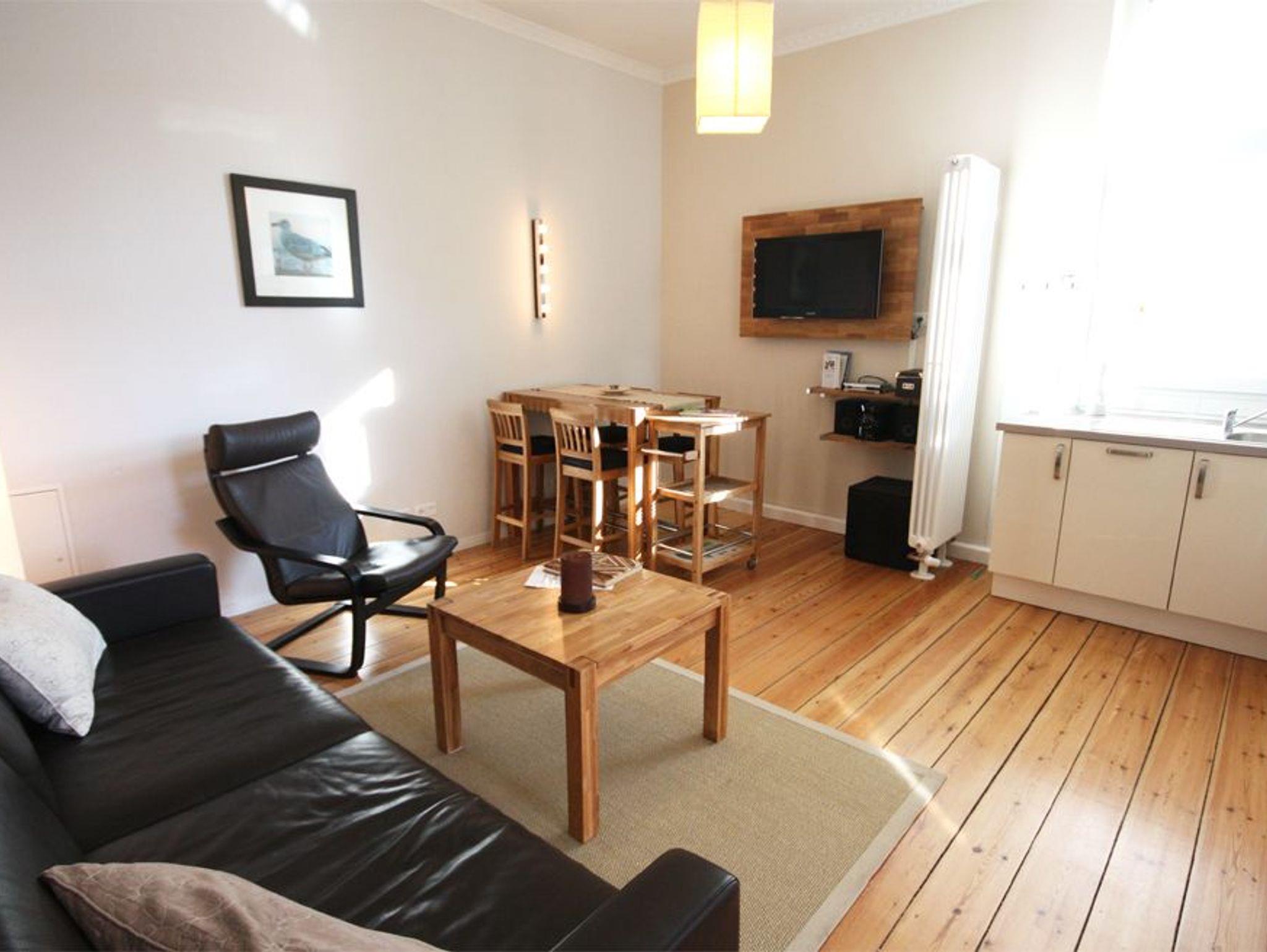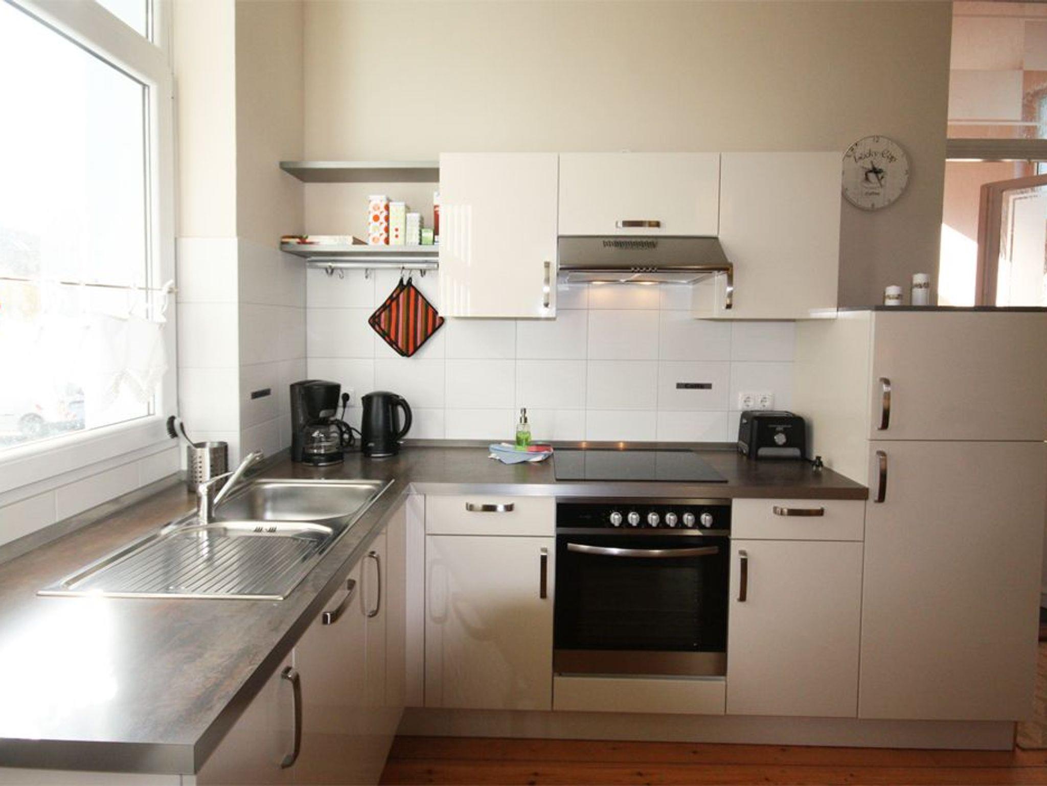 Schöne 2 Zimmer Ferienwohnung für bis zu 4 Personen in der Hochparterre eines schönen Altstadthauses in Warnemünde. Es gibt ein großes Wohn/Schlafzimmer mit intergrierter Küchenzeile sowie ein freundliches Schlafzimmer mit Doppelbett. Das Duschbad ist modern eingerichtet. die Küche lässt keine Wünsche offen.