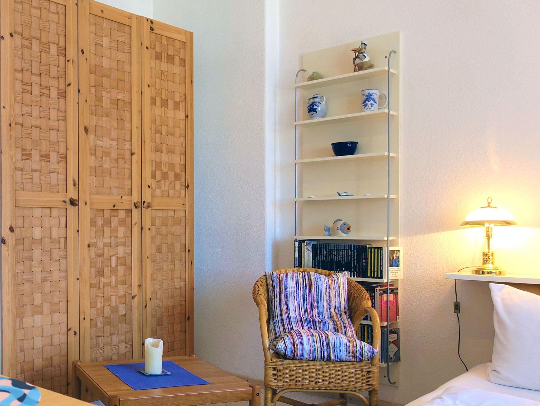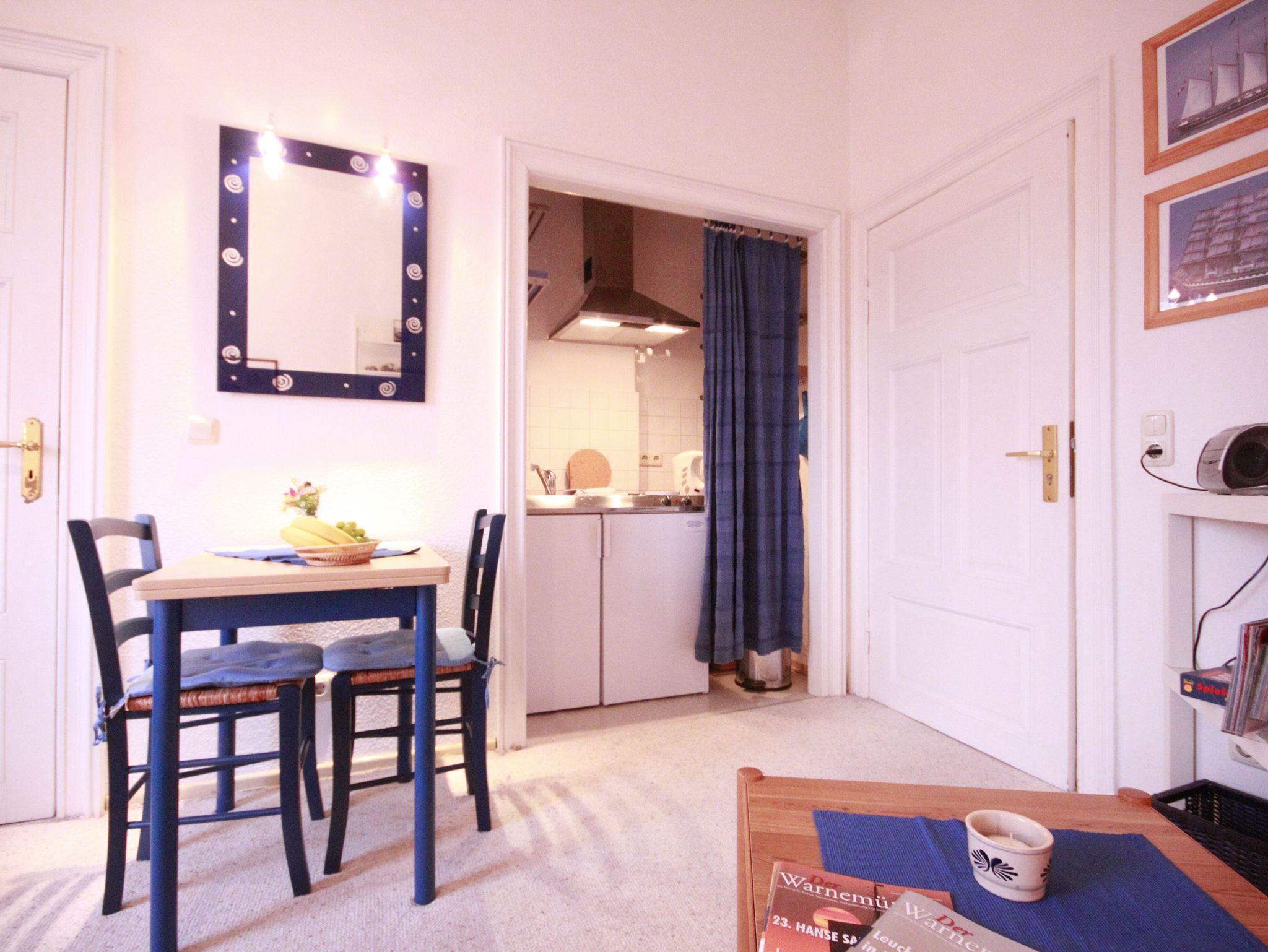 Das Studio ist 22 qm groß und liegt im 2. Obergeschoss eines schön renovierten Hauses inmitten von Warnemünde. Es besteht aus einem kombinierten Wohn- und Schlafraum. Die Pantryküche lässt sich mit einem Vorhang optisch vom Wohnraum abtrennen.