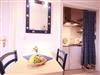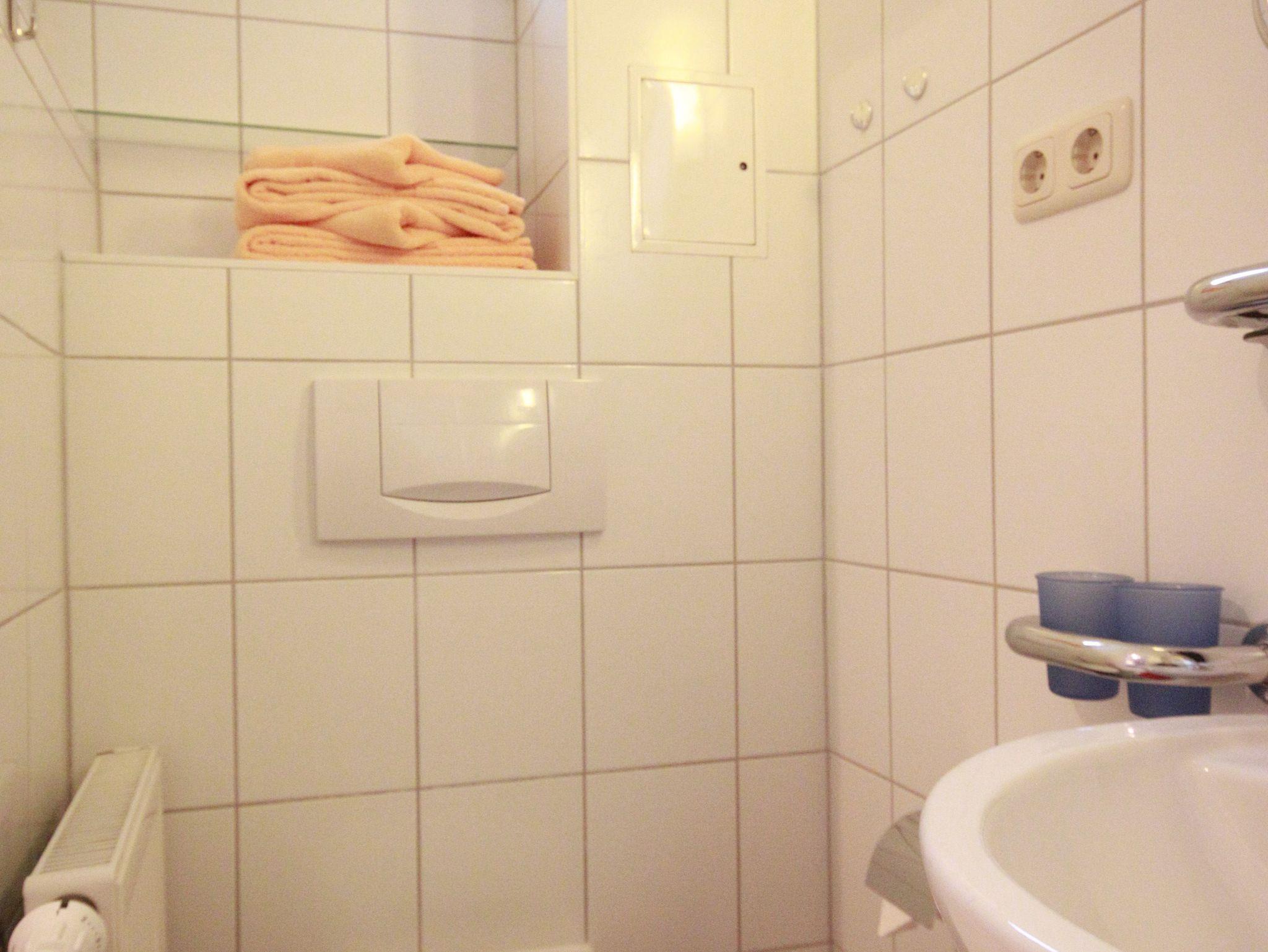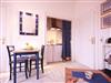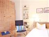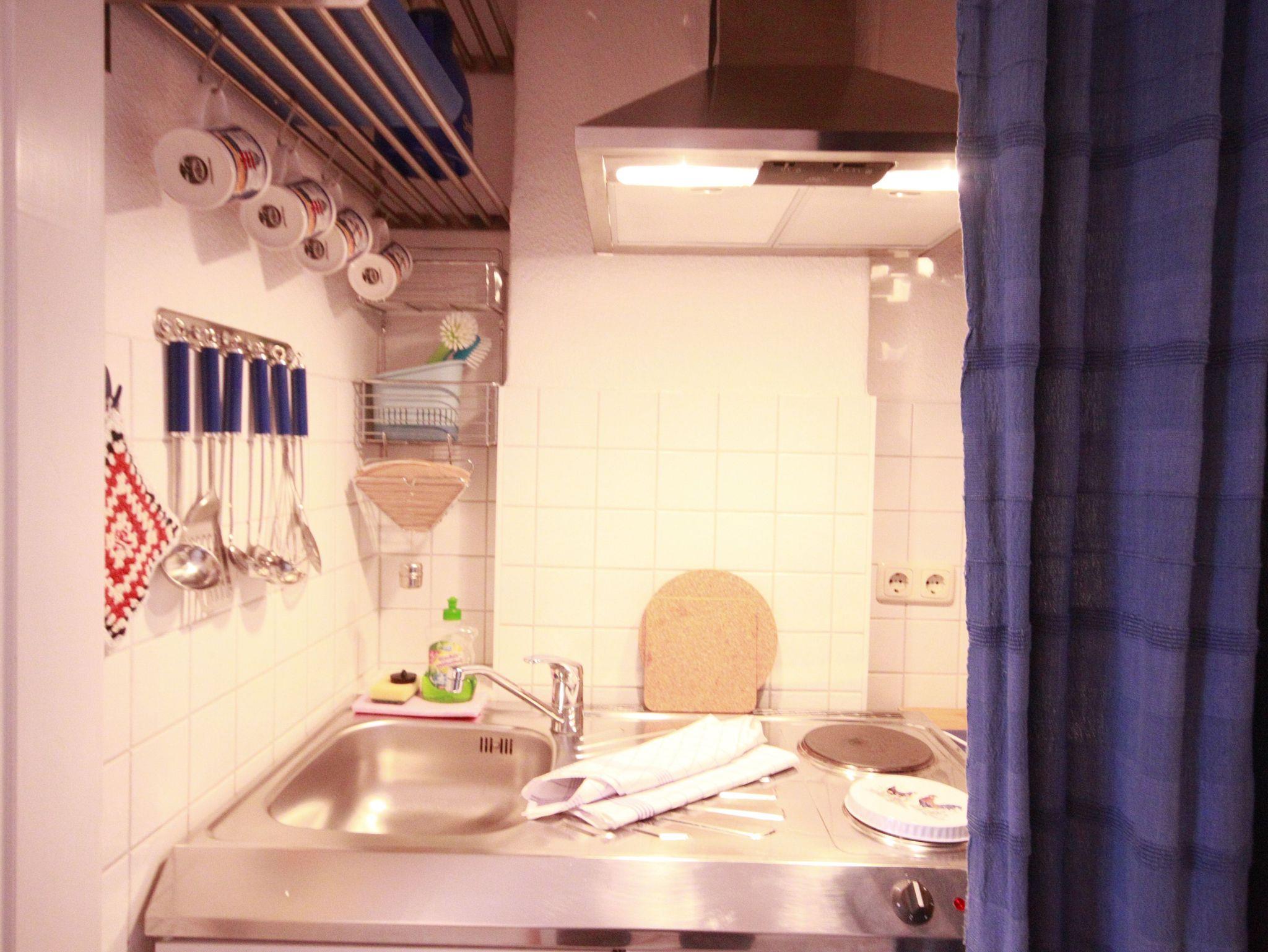 Helles gemütliches Ferienstudio für 2 Personen mit Schlafsofa, Dusche und WC und abgeteilter Pantryküche in maritimen Flair.