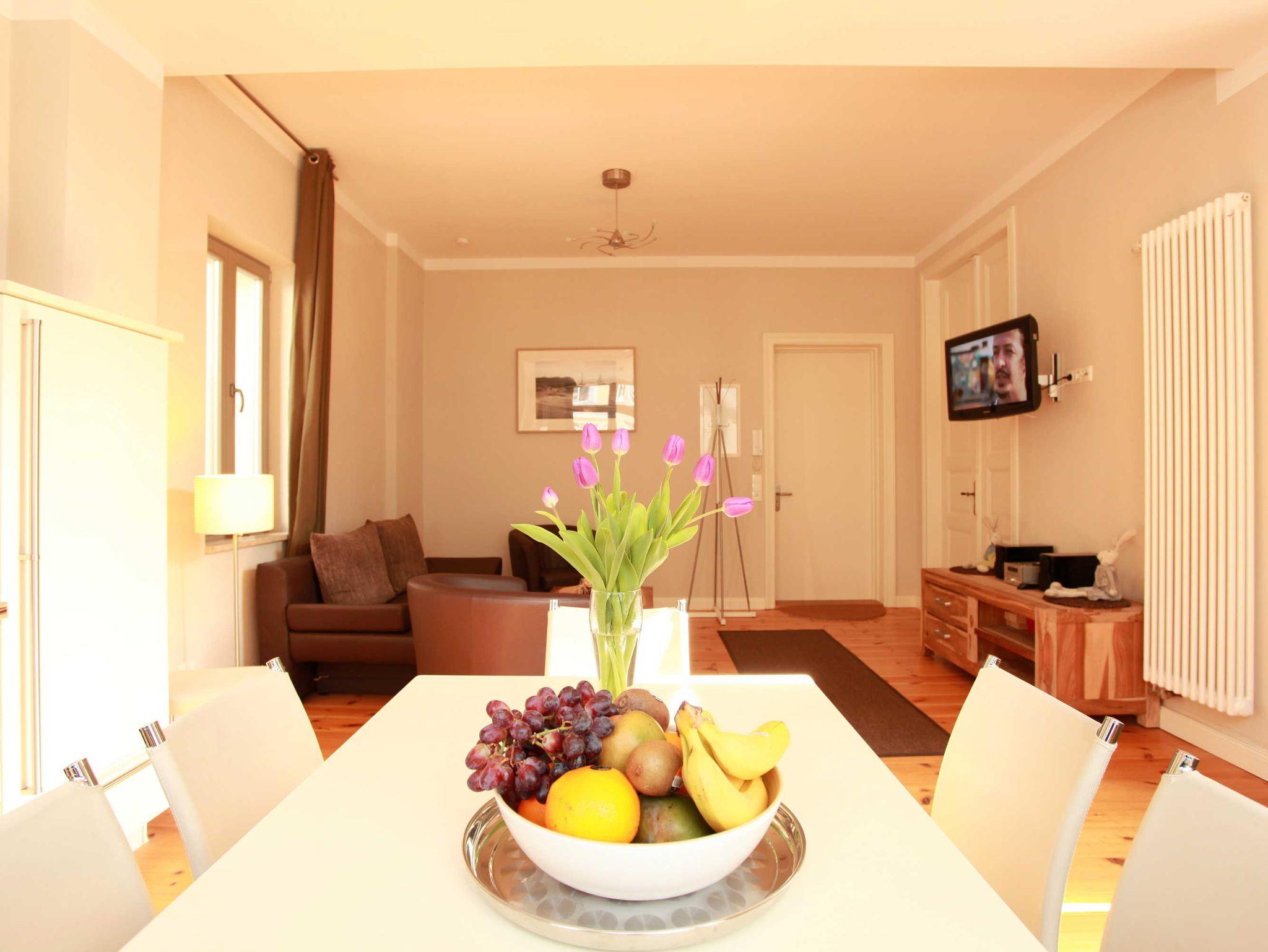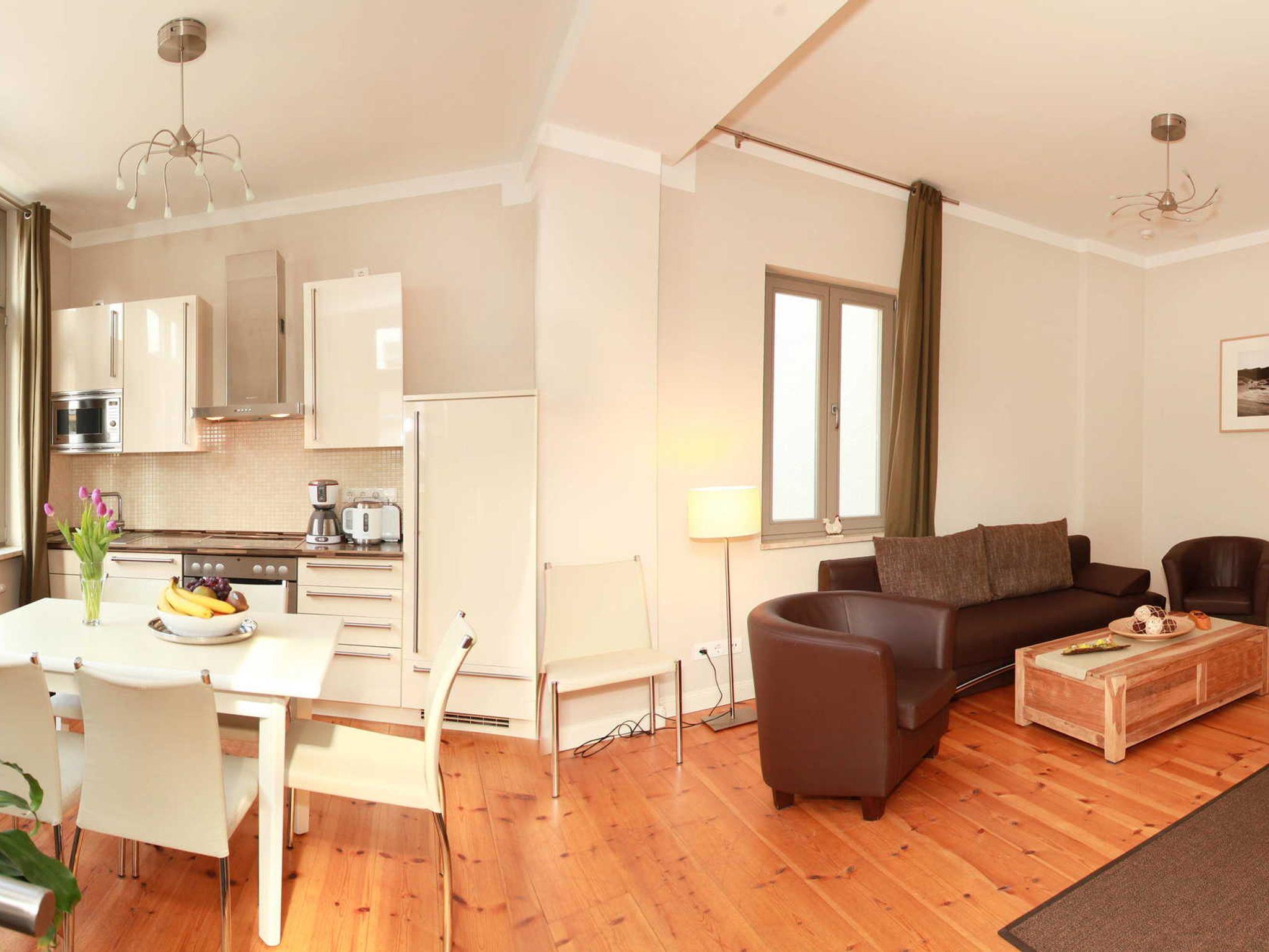 Die vier exklusiv ausgestatteten Ferienwohnungen in der Stadtvilla von Warnemünde sind bis zu 78 qm groß und für bis zu 6 Personen buchbar. Die Ferienwohnungen sind großzügig geschnitten, warmherzig und stilvoll eingerichtet, zum Teil mit Whirlpool, Fußbodenheizung, 2 seperaten Schlafzimmern sowie großen Terrassen. Alle Ferienwohnungen verfügen über exklusive Einbauküchen bis hin zu hochwertigen Schlaf-und Wohnzimmern. Alle Bäder sind mit Fußbodenheizung ausgestattet.