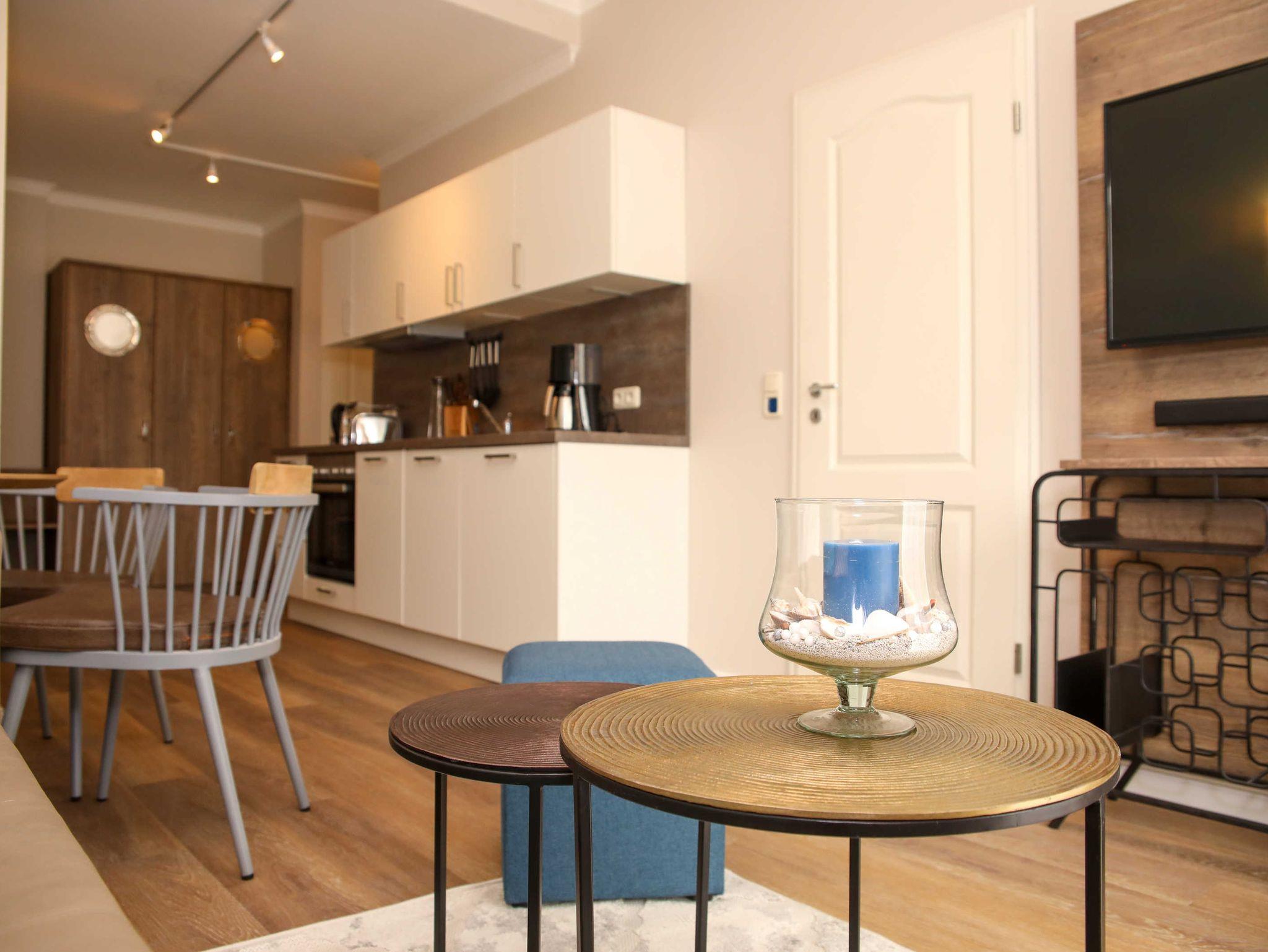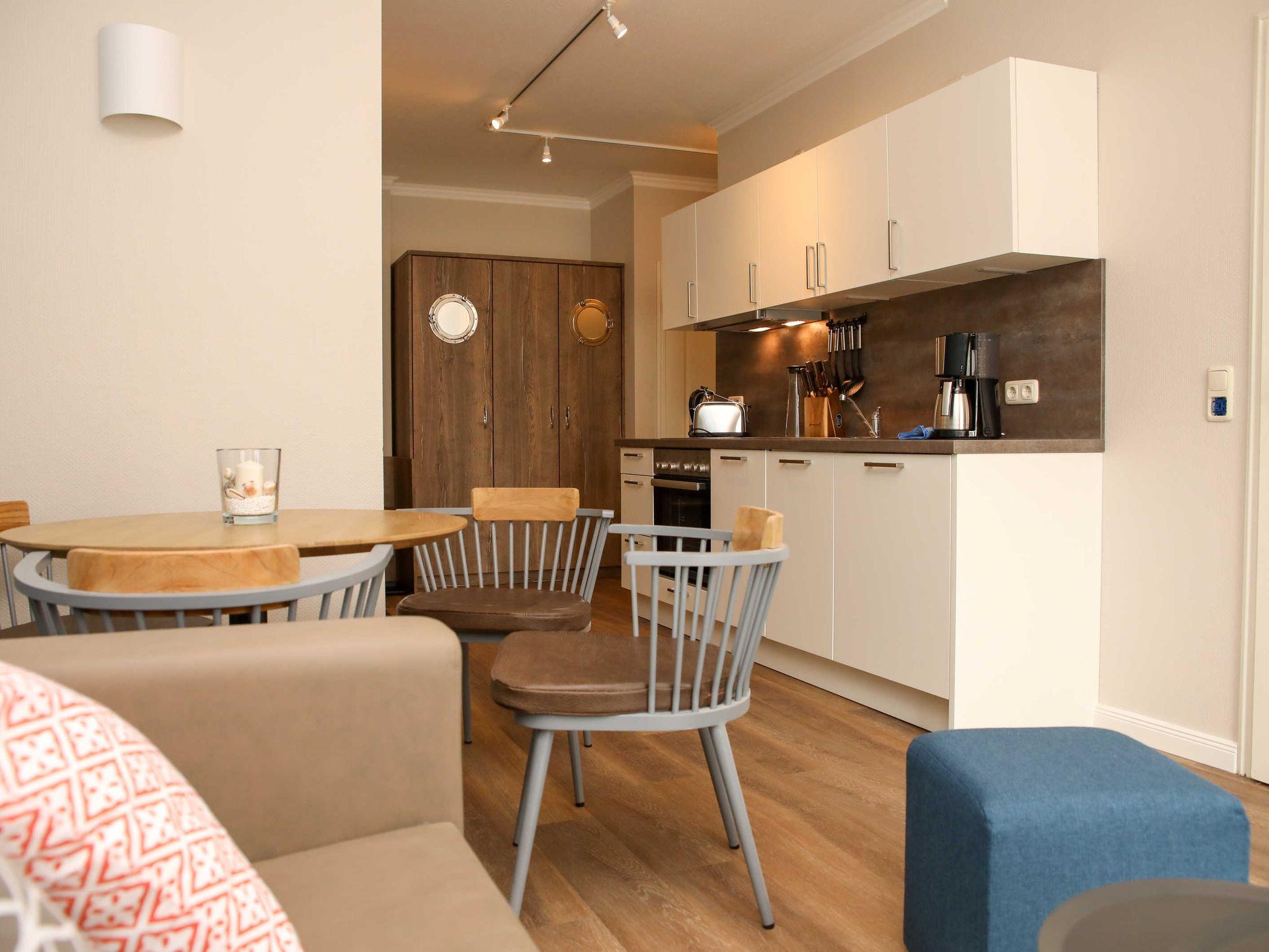 In unserem traditionsreichen Haus in Warnemünde haben wir 2021 alle Ferienwohnungen komplett neu renoviert. Die Möbel und Füßböden sind im Stildekor Wildeiche natur gehalten. Neue hochwertige Einbauküchen und Badgestaltungen wurden durchgeführt.