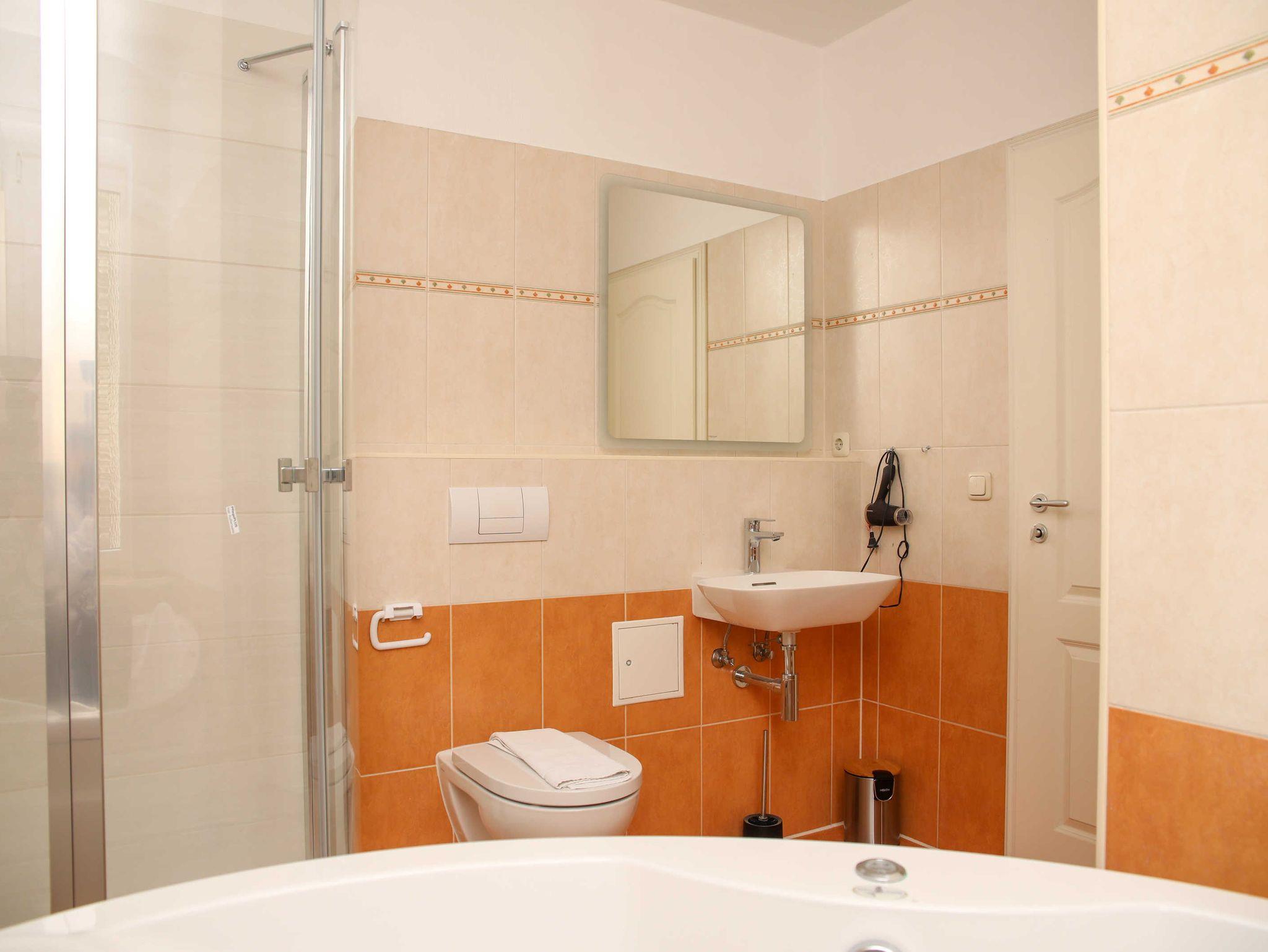 Die 2-Zimmer-Ferienwohnungen mit einer Größe von ca. 44 m² mit Balkon oder Terrasse bieten viel Platz für bis zu 4 Personen in separaten Wohn- und Schlafzimmern mit Doppelbett sowie ein neu gestaltetes Duschbad mit Whirlpool.