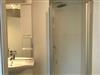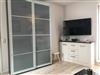 Das Apartment in Warnemünde hat ein Schlafzimmer mit Doppelbett, einen offenen Wohn- und Küchenbereich mit großem Fernseher und ein Badezimmer mit Dusche/WC.