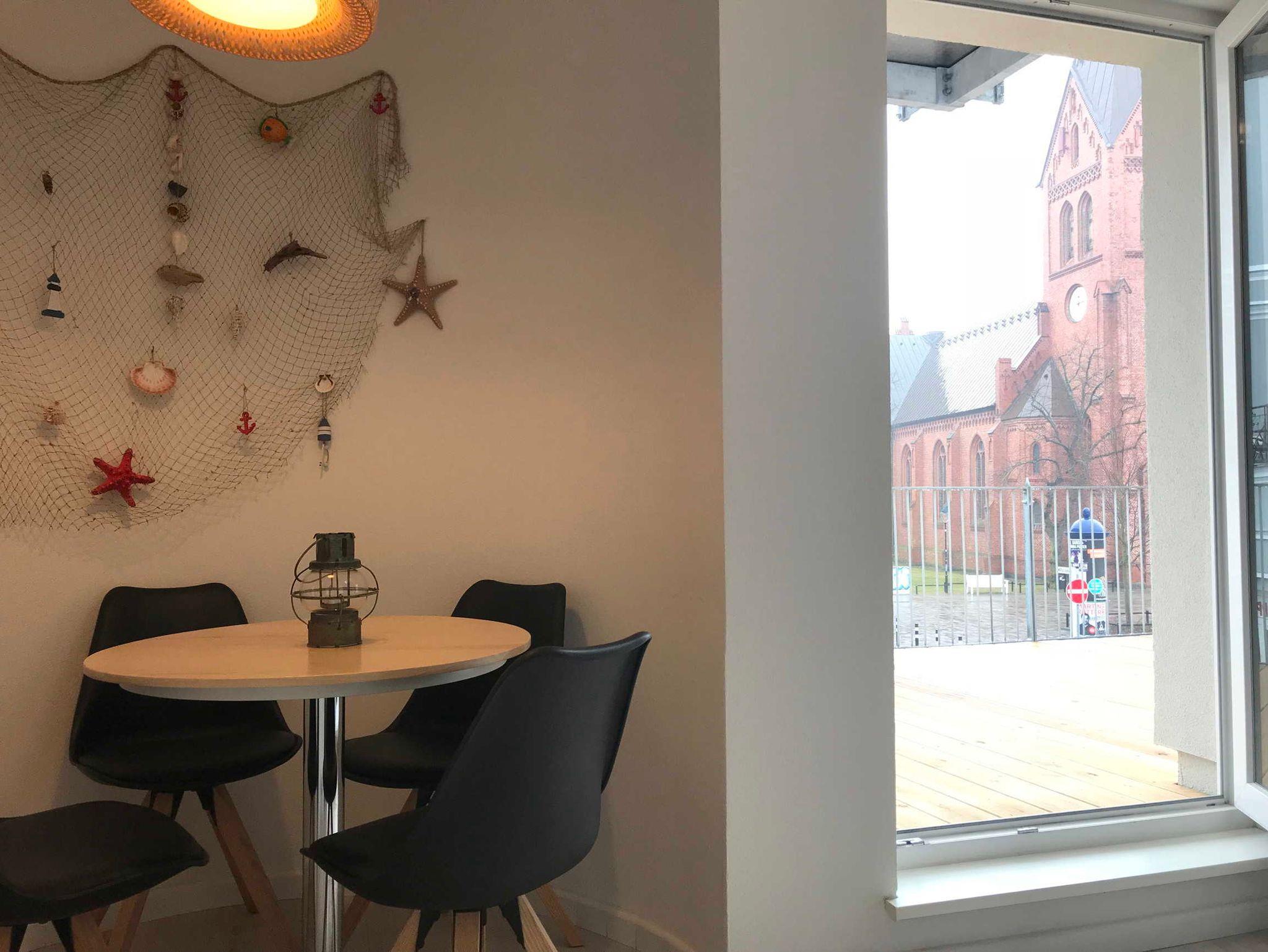 Das Apartment Warnemünde liegt direkt am Kirchenplatz des Ostseebads. Es befindet sich in einem Altbau und wurde im Frühjahr 2018 neu eröffnet. Die Ausstattung ist exklusiv und sehr hochwertig. Das Apartment kann mit dem Aufzug erreicht werden. Das Apartment bietet eine 30 qm große Terrasse mit Blick über den Kirchenplatz.