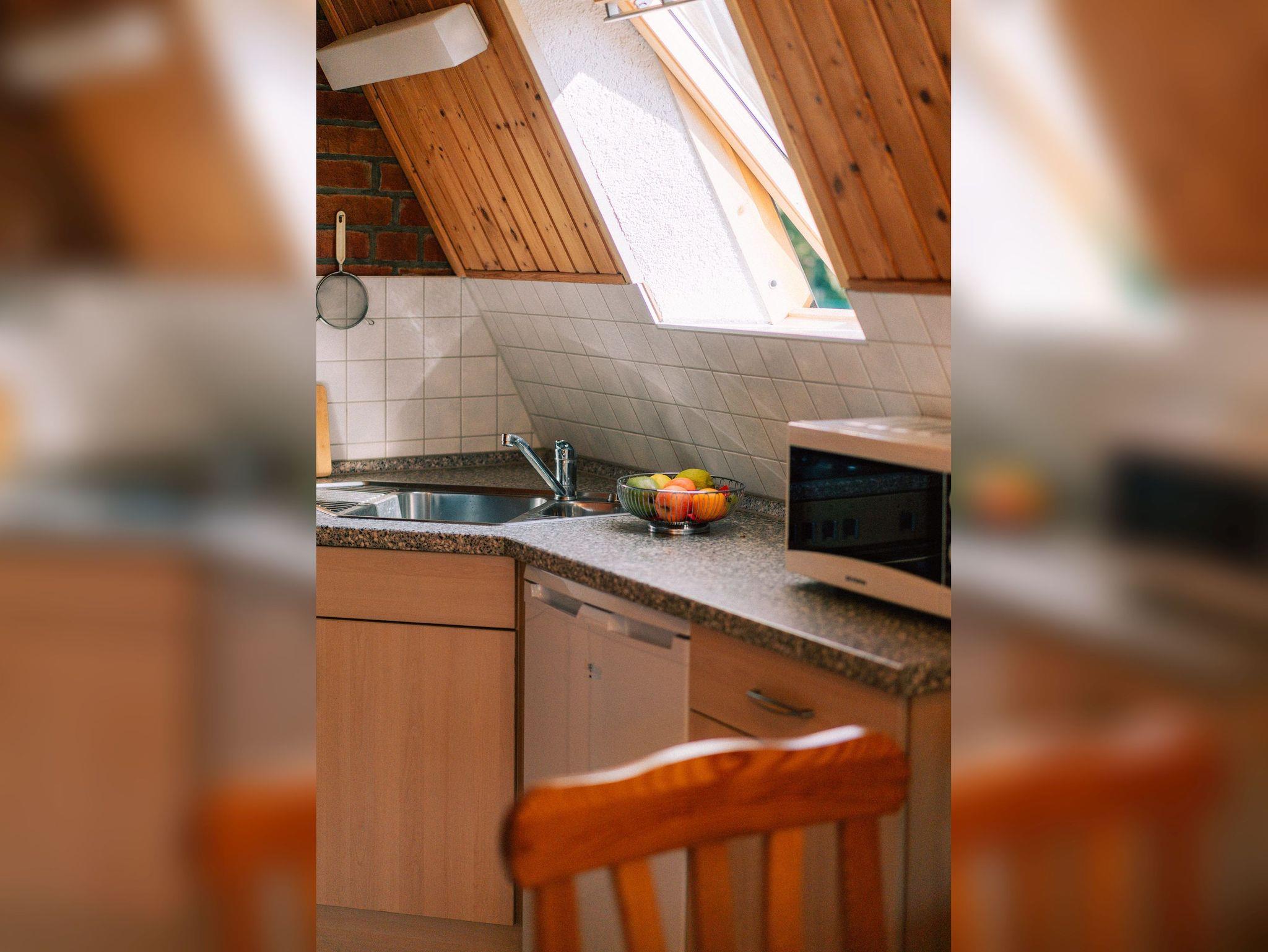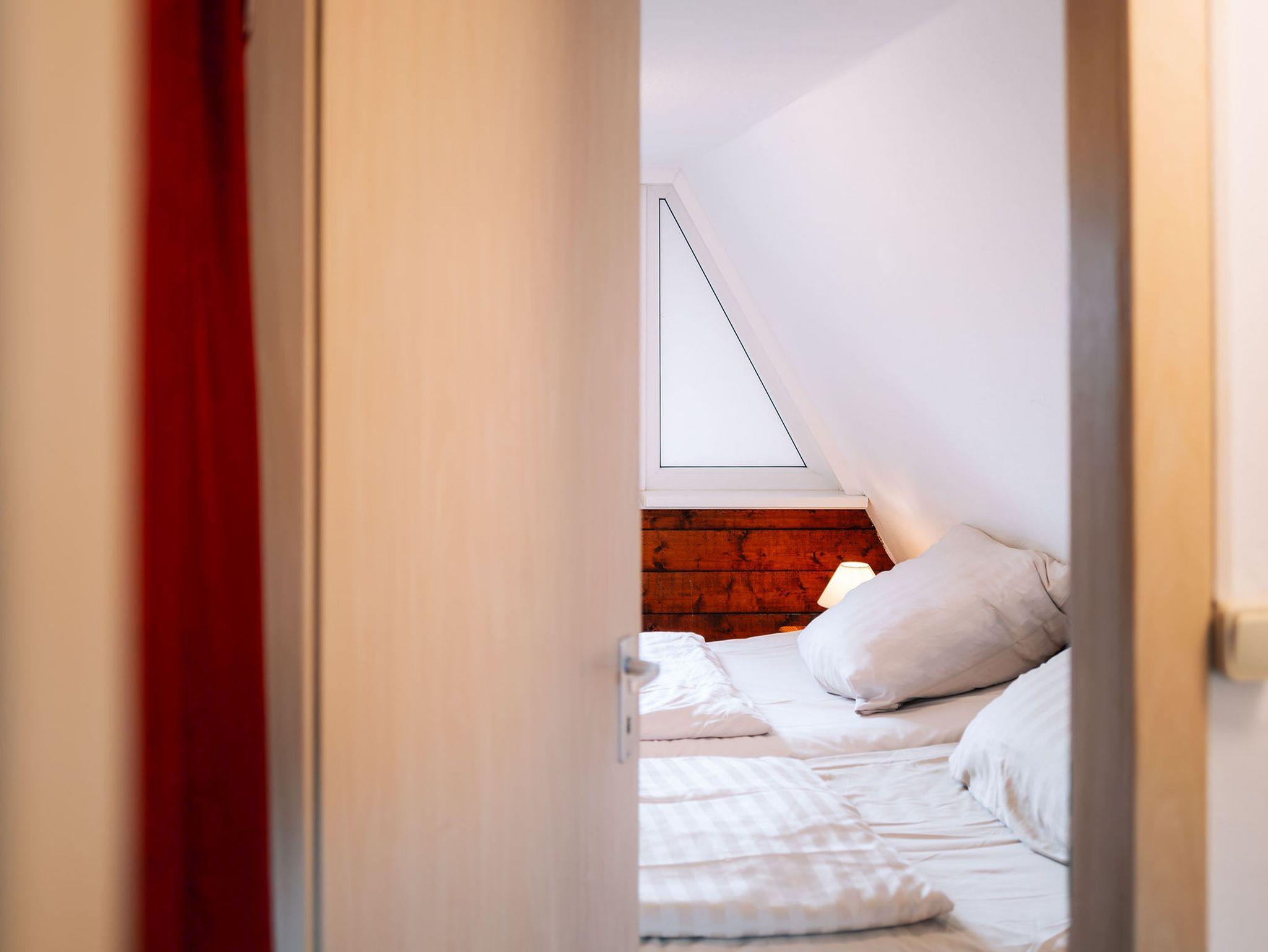 Eine steile Raumspartreppe führt zu den zwei Schlafräumen - ein Schlafzimmer mit Doppelbett, ein Schlafzimmer mit zwei Einzelbetten. Die Bettwäsche ist inklusive. Handtücher bitte mitbringen!
