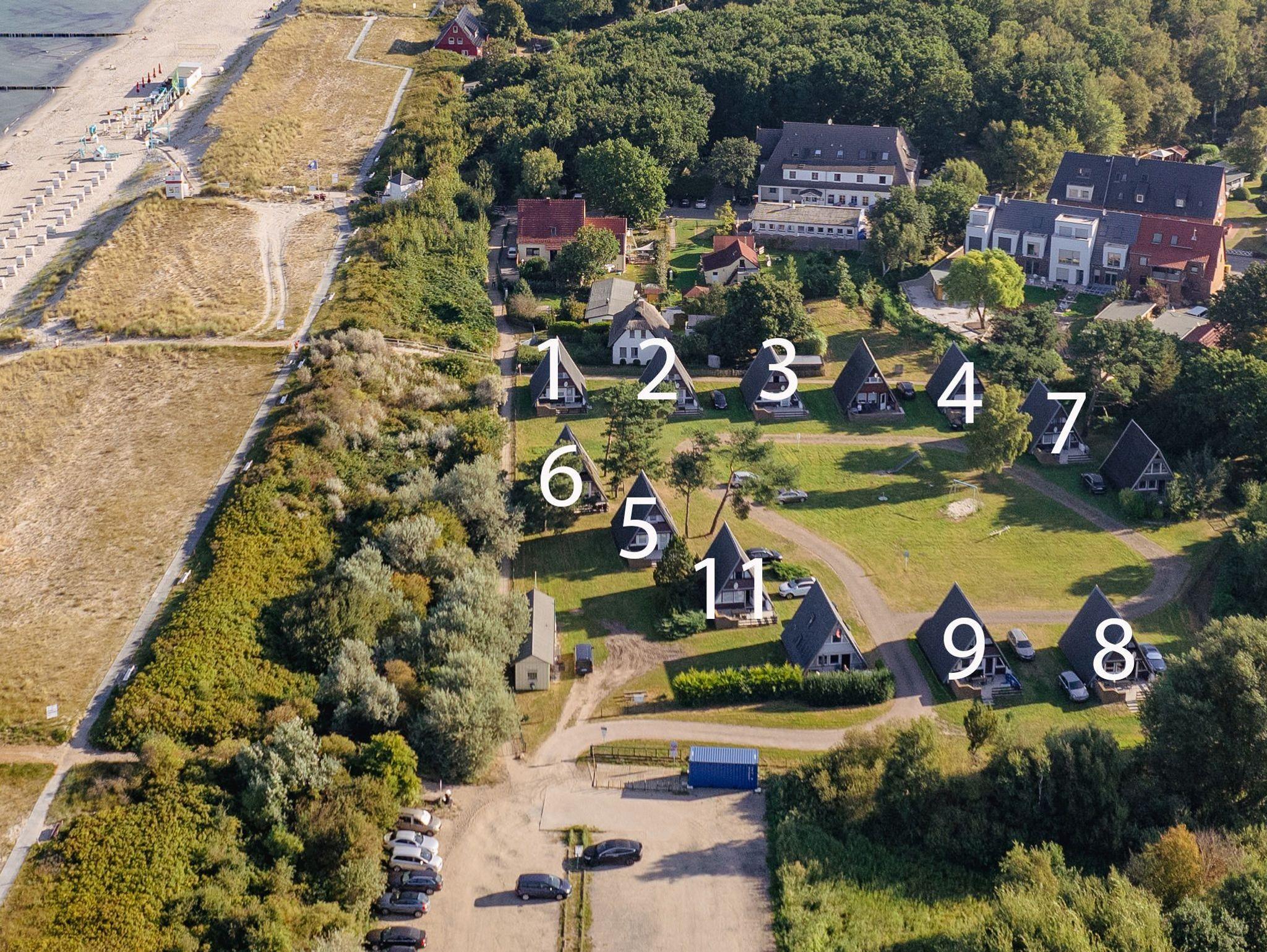Jede Hütte verfügt über eine eigene, südwärts gerichtete Terrasse, auf der man die frische Meeresluft genießen kann. Die Lage inmitten der Natur bietet Ruhe und Erholung, während man dennoch in kurzer Entfernung zu den wichtigsten Sehenswürdigkeiten ist. Ein idealer Ort, um dem Alltag zu entfliehen und die Schönheit der Ostseeküste zu erleben. Ein Kinderspielplatz befindet sich mittig auf der Anlage.