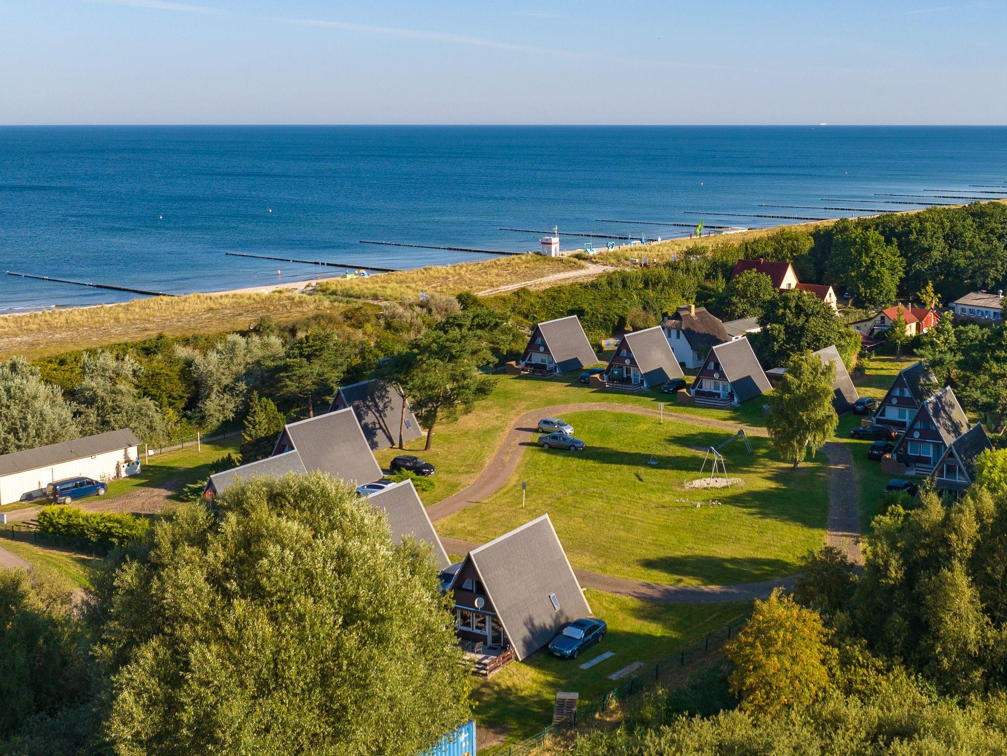 Jede Hütte verfügt über eine eigene, südwärts gerichtete Terrasse, auf der man die frische Meeresluft genießen kann. Die Lage inmitten der Natur bietet Ruhe und Erholung, während man dennoch in kurzer Entfernung zu den wichtigsten Sehenswürdigkeiten ist. Ein idealer Ort, um dem Alltag zu entfliehen und die Schönheit der Ostseeküste zu erleben. Ein Kinderspielplatz befindet sich mittig auf der Anlage.