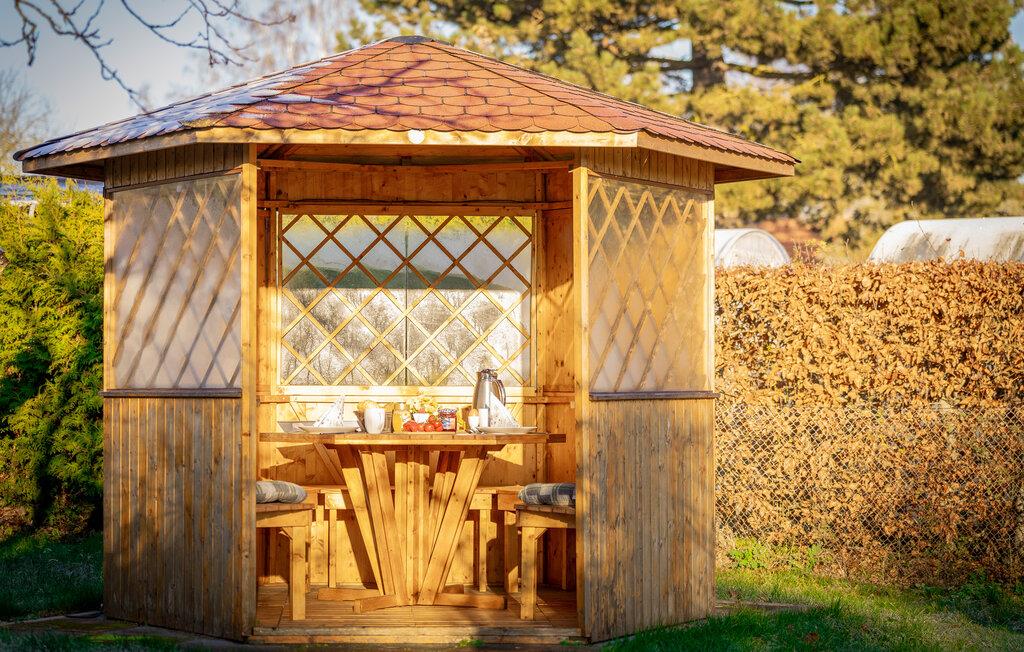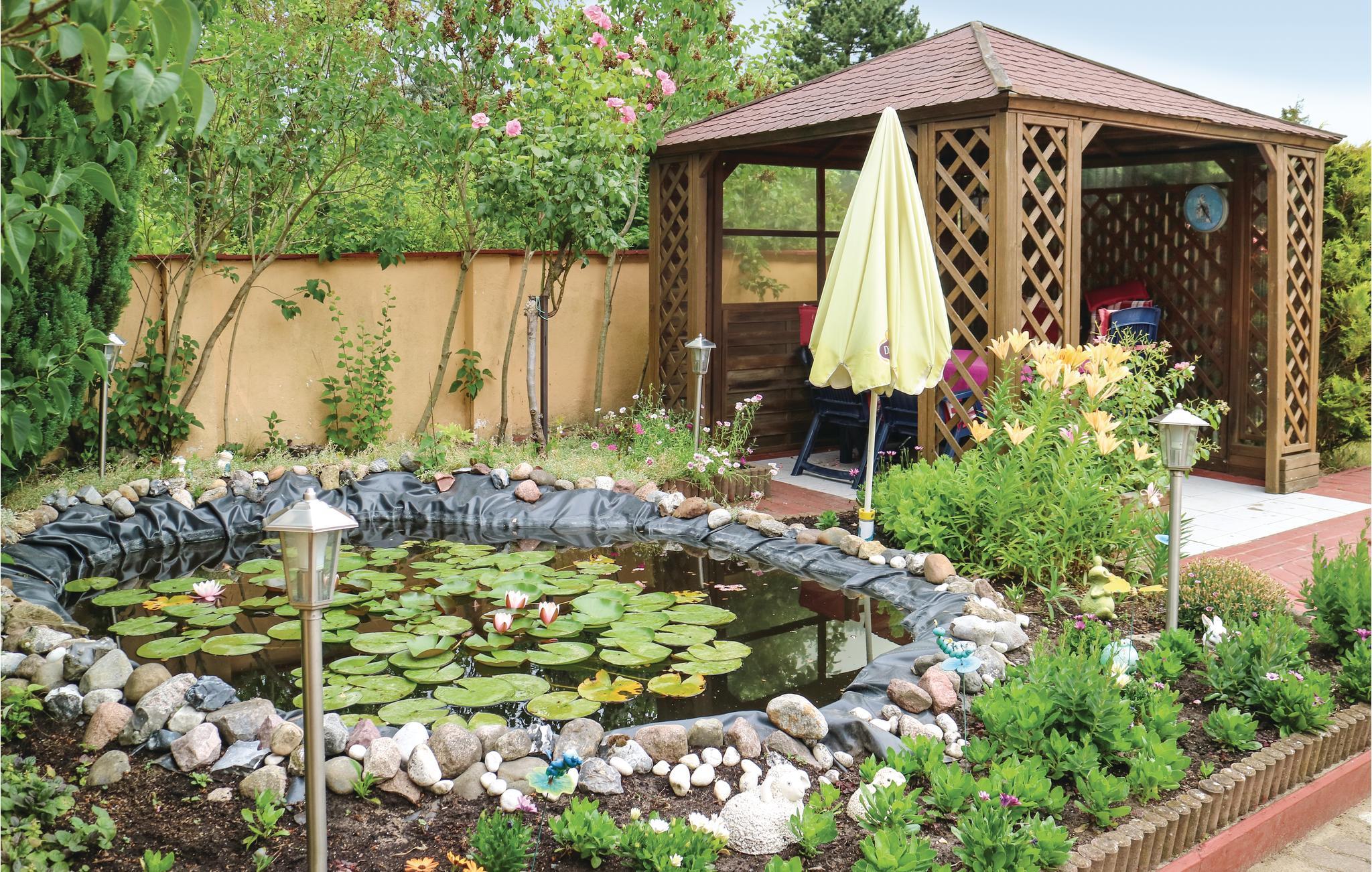 Denne feriebungalow er komfortabelt og praktisk indrettet. Ejendommen har en lille terrasse med siddeområde, et børnebassin og en grill. Her kan I slappe af og nyde solen, når vejret er godt.