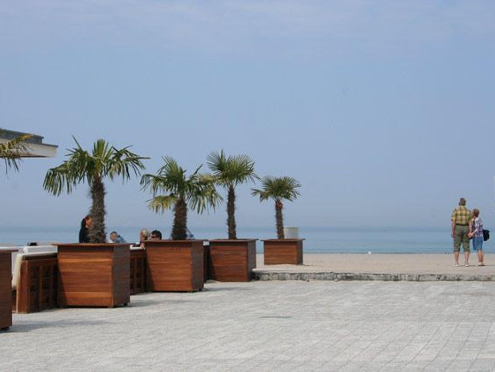 Die große sonnige Terrasse leigt rückwärtig zum alten Strom, der pittoreseken Hafenmeile von Warnemünde.
