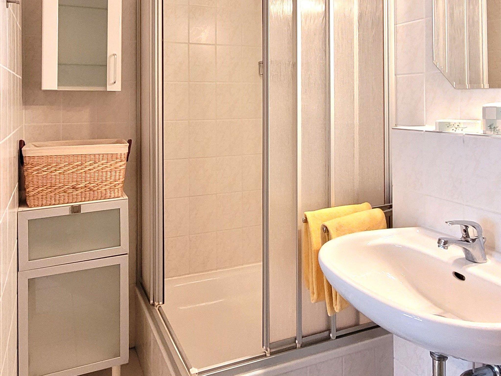 Das Badezimmer ist mit Dusche.