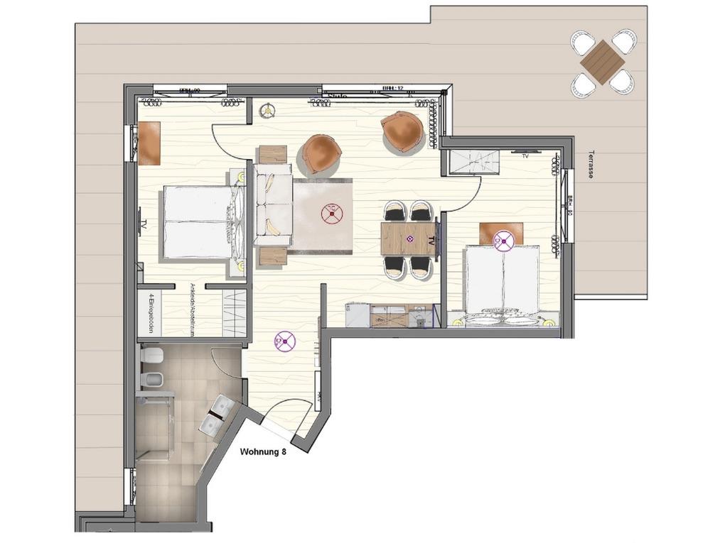Zur Ausstattung gehören Bettwäsche, Handtücher, Kühlschrank, teilweise Mikrowelle, Cerankochfeld, Geschirrspüler (nicht im 1-Raum-Appartement), Nespresso-Kapsel-Kaffeemaschine, Wasserkocher, Toaster sowie Dusche/WC, Haartrockner, Flachbild-TV im Wohn- und Schlafbereich, begehbarer Kleiderschrank (in den Komfort-Appartements).