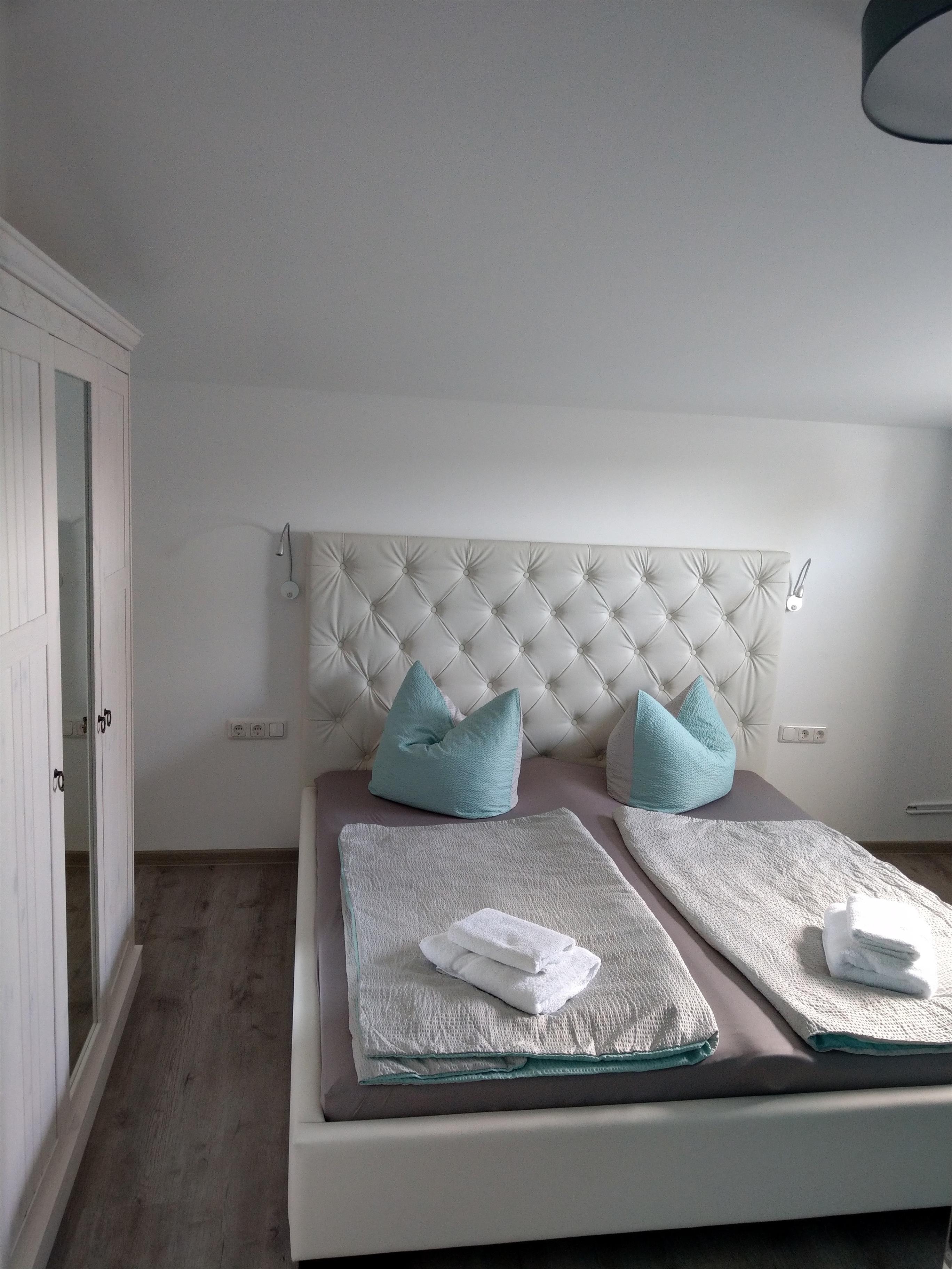 Im Dachgeschoss (2. OG) befindet sich die große Etagen- Fereinwohnung mit herrlichem Blick über die Stadt und auf den Alten Strom.