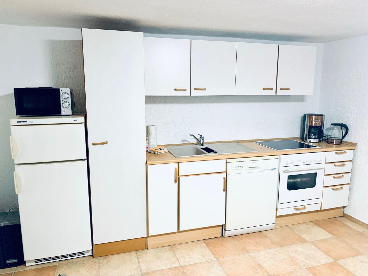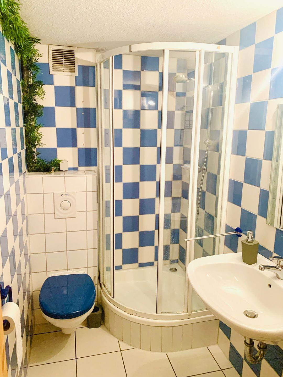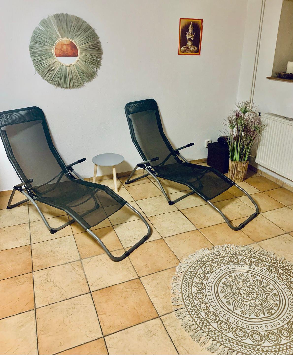 Im Erd-/Untergeschoss finden Sie eine Sauna und einen Ruheraum mit Kamin und Entspannungsmusik. Auch der Waschraum mit der Waschmaschine und allen Reinigungsgegenständen (Besen etc.). Außerdem finden sie hier ein großes Schlafzimmer mit einem Boxspringbett und einem Schlafsessel sowie ein Zustellbett. Das unten liegende Wohnzimmer ist mit Terassentür und einer offenen Wohnküche ausgestattet. Spülmaschine, Smart-TV, Eckcouch, Esstisch etc.. Angrenzend ist das kleine aber feine Badezimmer mit Dusche.