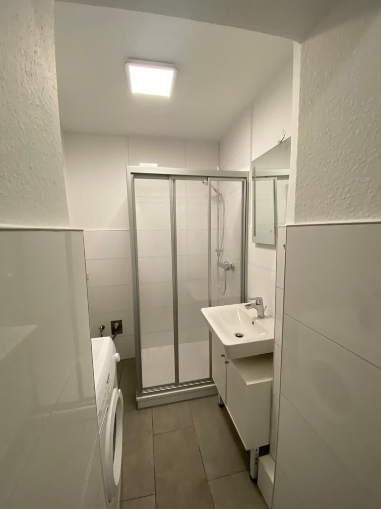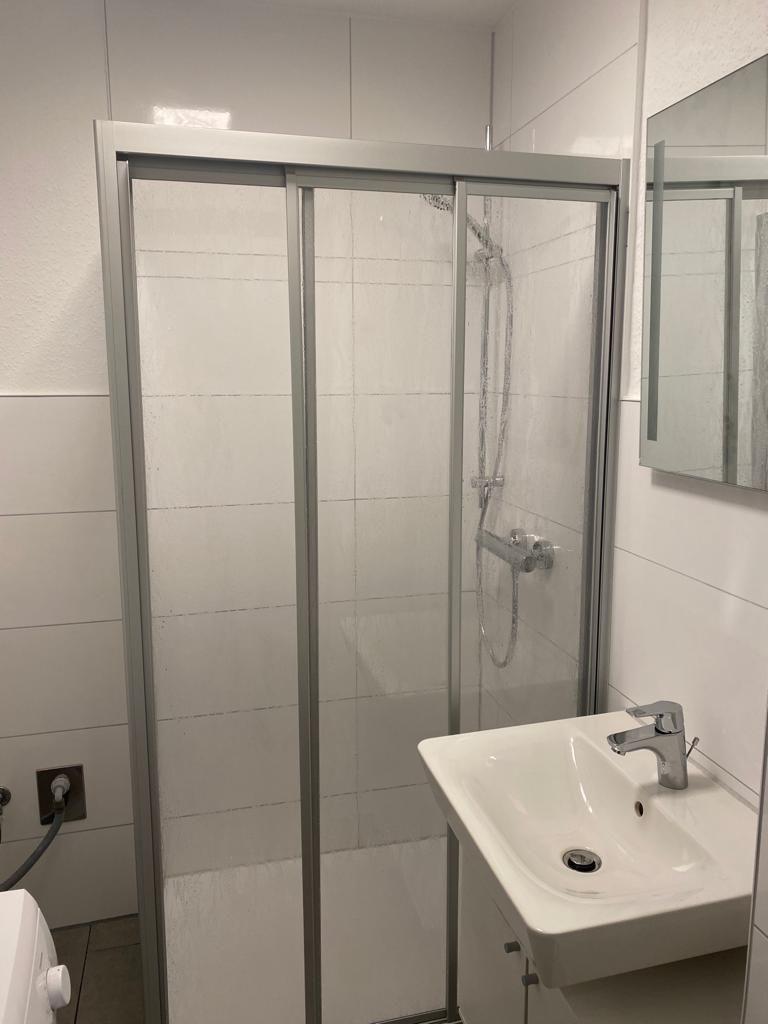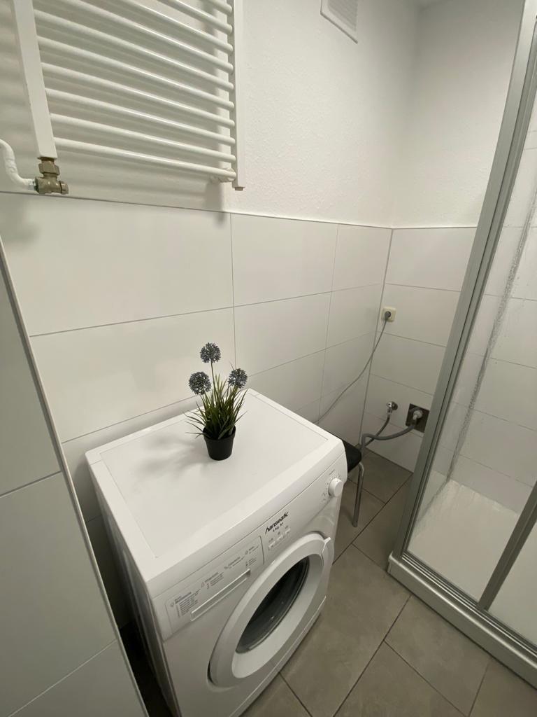 Im Badezimmer gibt es eine Badewanne in der Sie duschen oder ein gemütliches Bad nehmen können. Ebenfalls befindet sich hier die Waschmaschine.