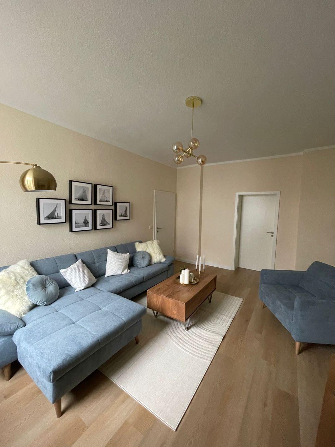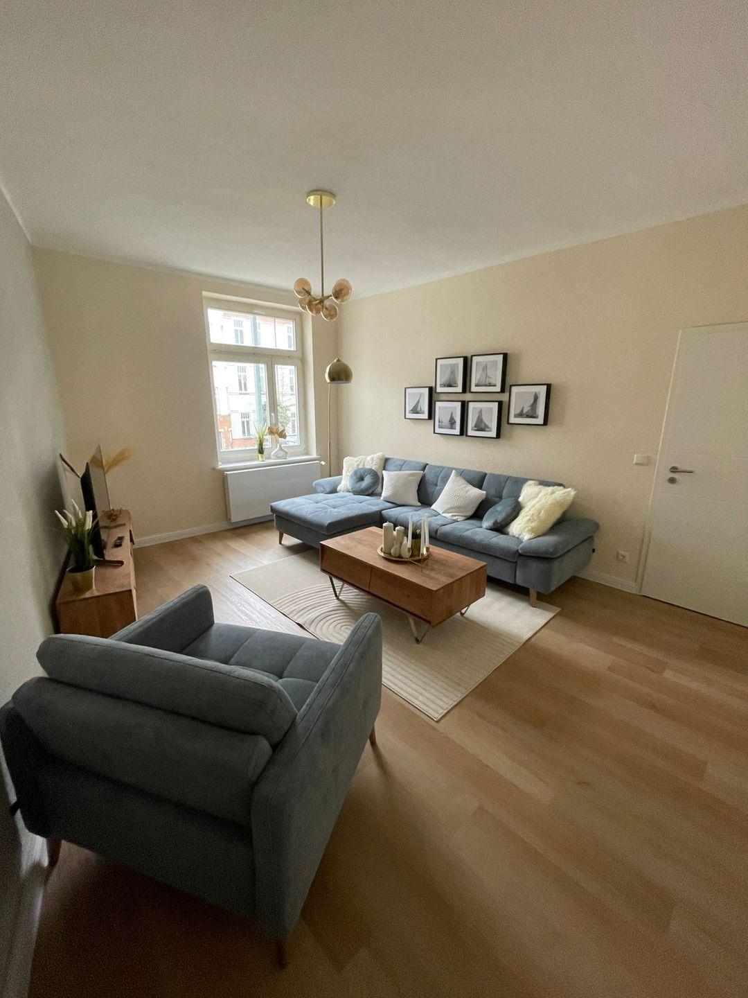 Das großzüge Wohnzimmer mit Smart-Tv (Netflix etc.) mit Blick zum Innenhof verfügt außerdem über ein großes Sofa, welches man bequem zur Schlafgelegenheit umbauen kann.