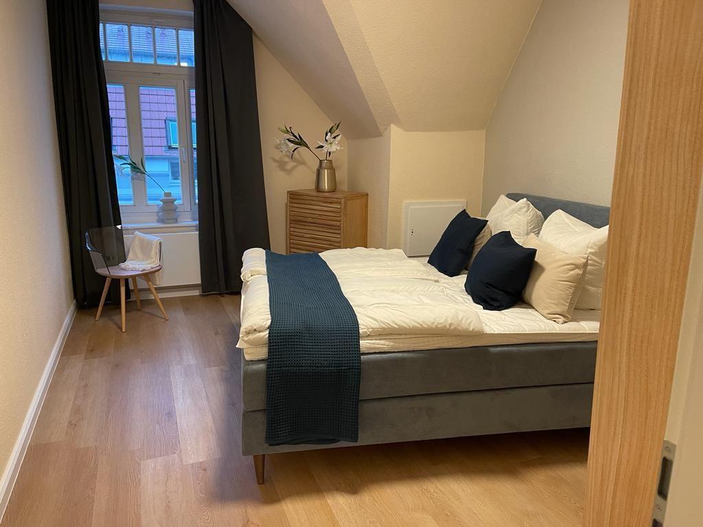 Die ruhig und zentral gelegene Ferienwohnung bietet alles, was für einen schönen Aufenthalt benötigt wird. Sie verfügt über ein Wohnzimmer mit Fernseher, eine voll ausgestattete Einbauküche (mit Geschirrspüler) und ein Vollbad (mit Badewanne). Bei gutem Wetter können Sie auf dem Balkon Ihr Frühstück mit Blick auf das Stadtarchiv und das Standesamt genießen. Die Innenstadt sowie die Straßenbahn erreichen Sie in nur 3 Minuten Fußweg.
