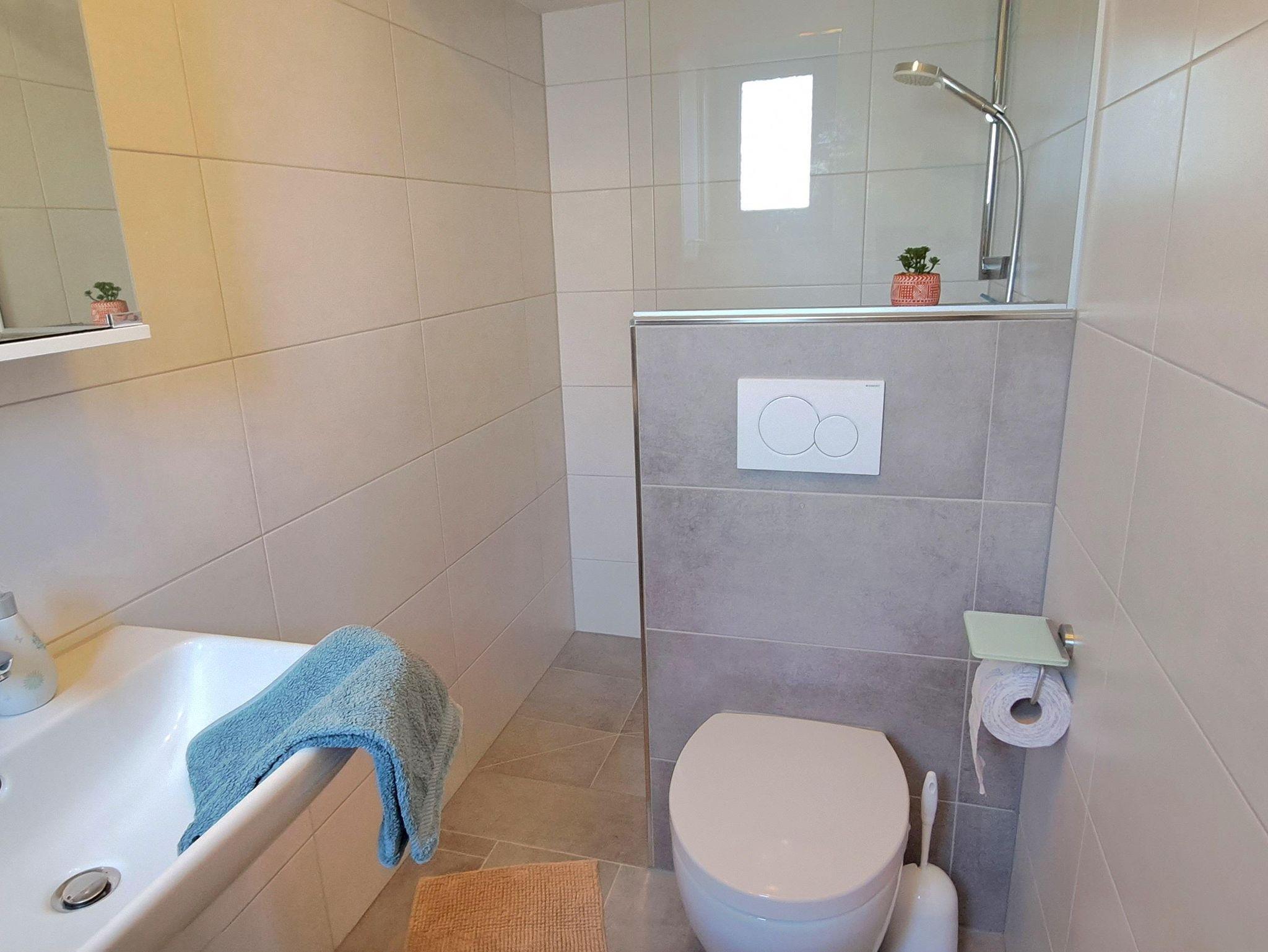 • Badezimmer mit ebenerdiger Dusche, WC sowie separates Gäste WC