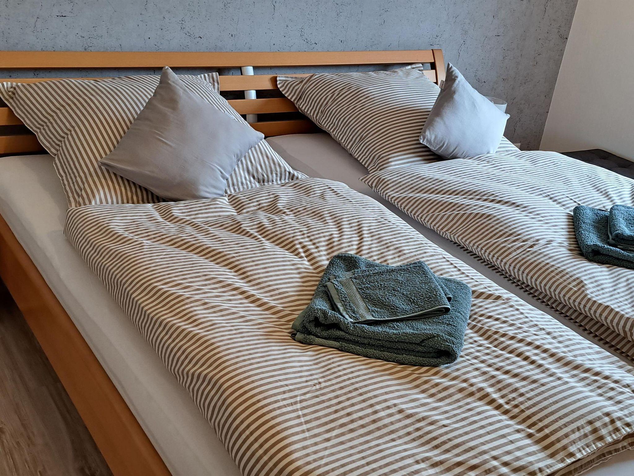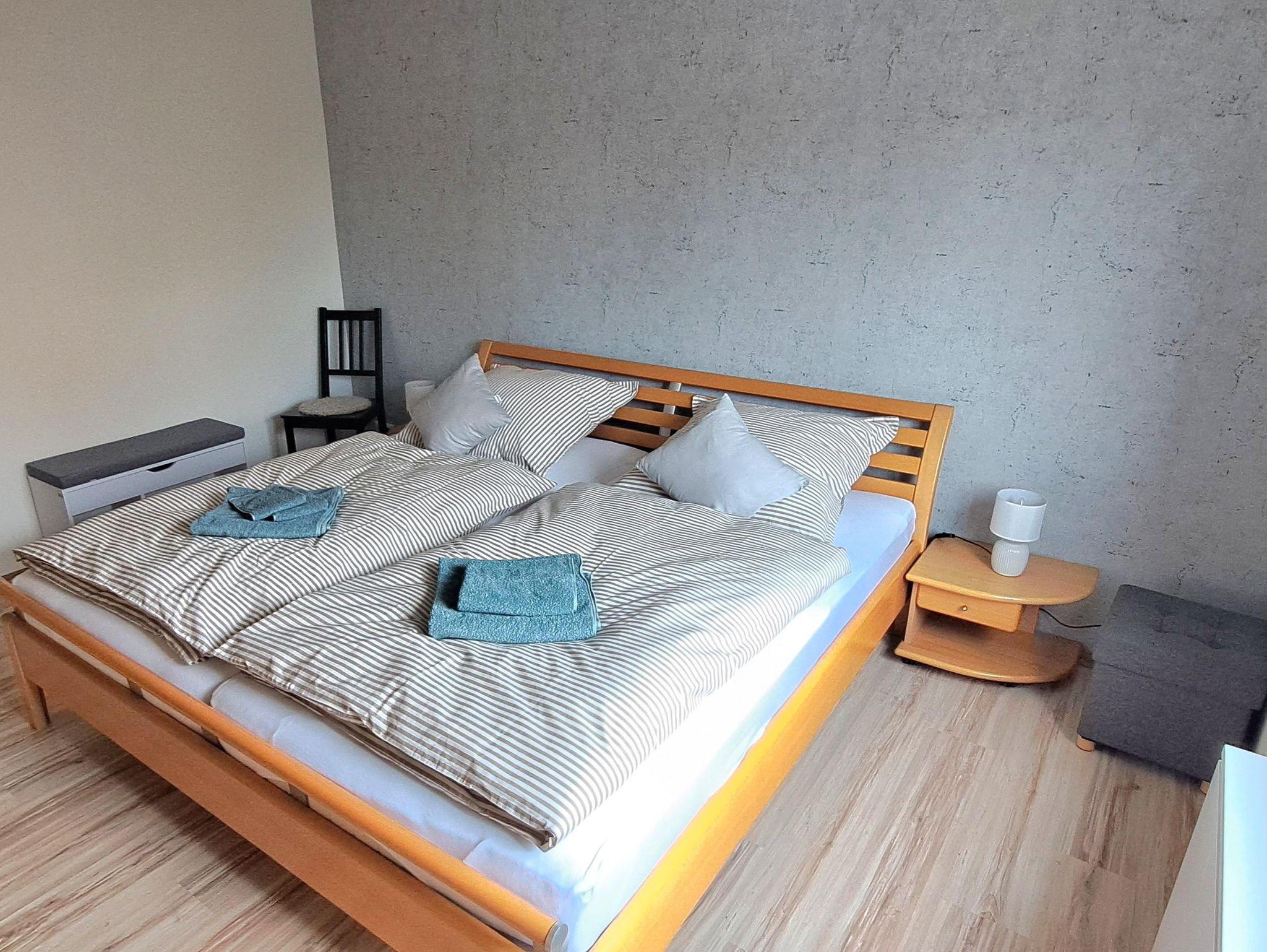 Das Schlafzimmer ist mit einem Doppelbett sowie einem großen Kleiderschrank ausgestattet und direkt am Badezimmer gelegen.