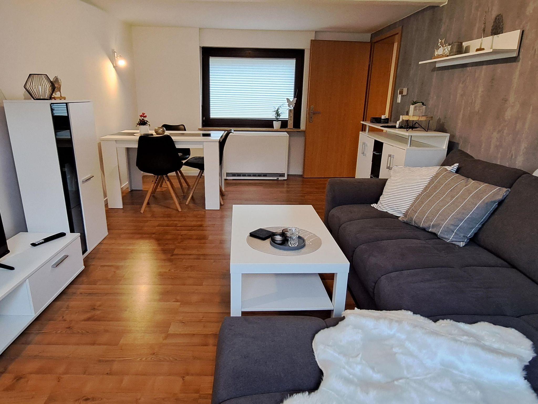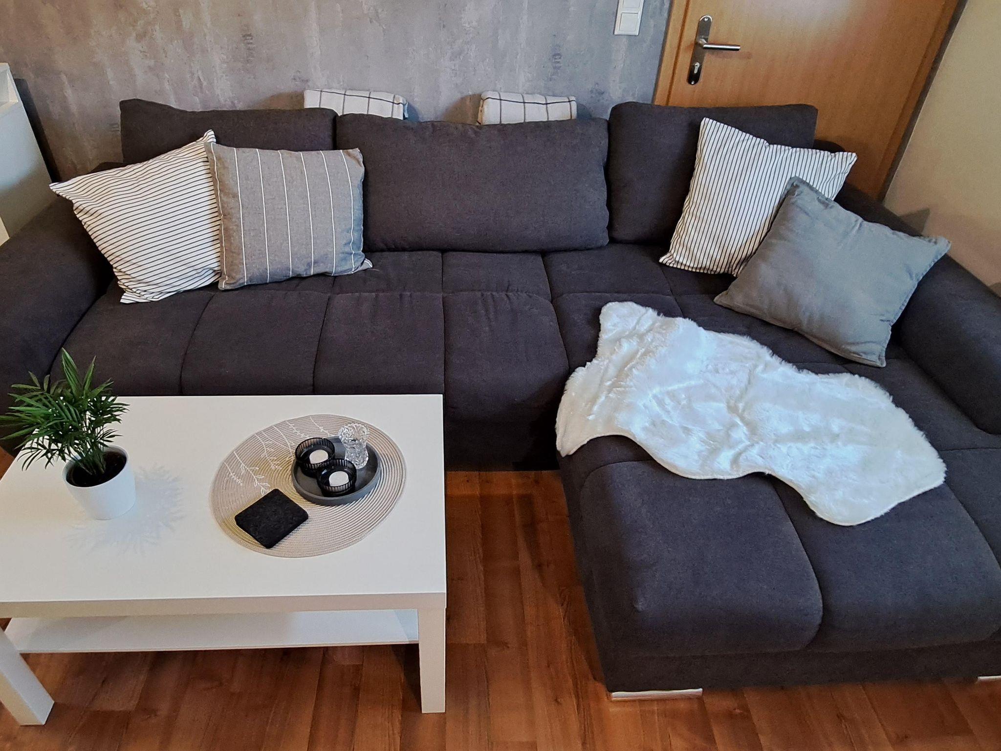 • Gemütliches Wohnzimmer mit Essecke für 4 Personen und großer Couch