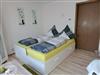 • Kleineres Schlafzimmer mit ausziehbarem Tagesbett (mit zwei separaten Matrazen zu jeweils 80 cm) sowie einem Schreibtisch