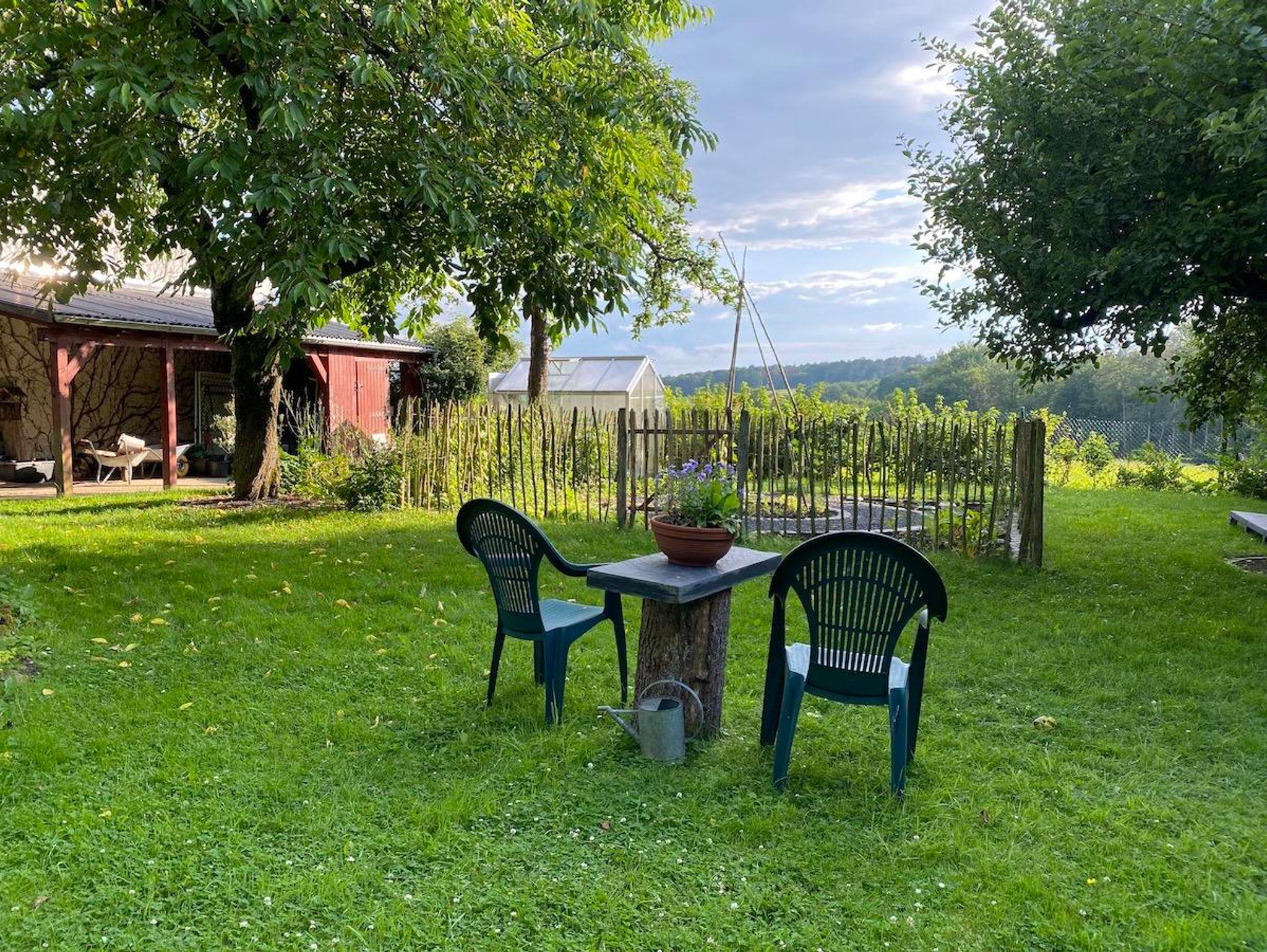 Zum Gästehaus, das zur Südseite ausgerichtet ist, gehören der dicht bewachsene Vorgarten, eine Sonnenbank und ein überdachter Terrassenplatz. Ein Grill kann bei Bedarf zur Verfügung gestellt werden. Außerdem sind Wald, Wiesen und Wanderwege fußläufig erreichbar, ebenso ein vielseitiger Spielplatz im Ort.