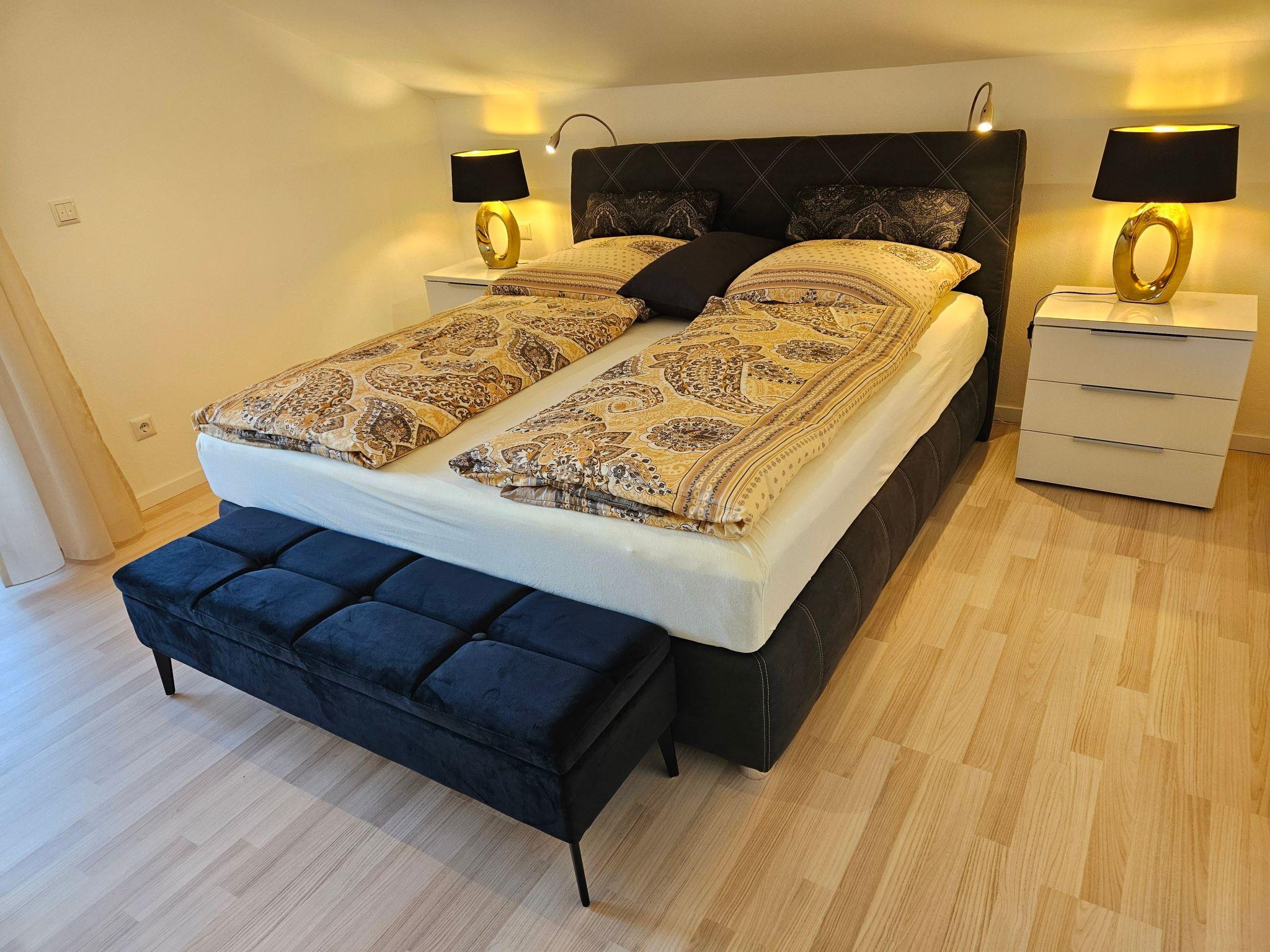 - Box-spring bed (1.80m x 2m) with reading lights and bed bench