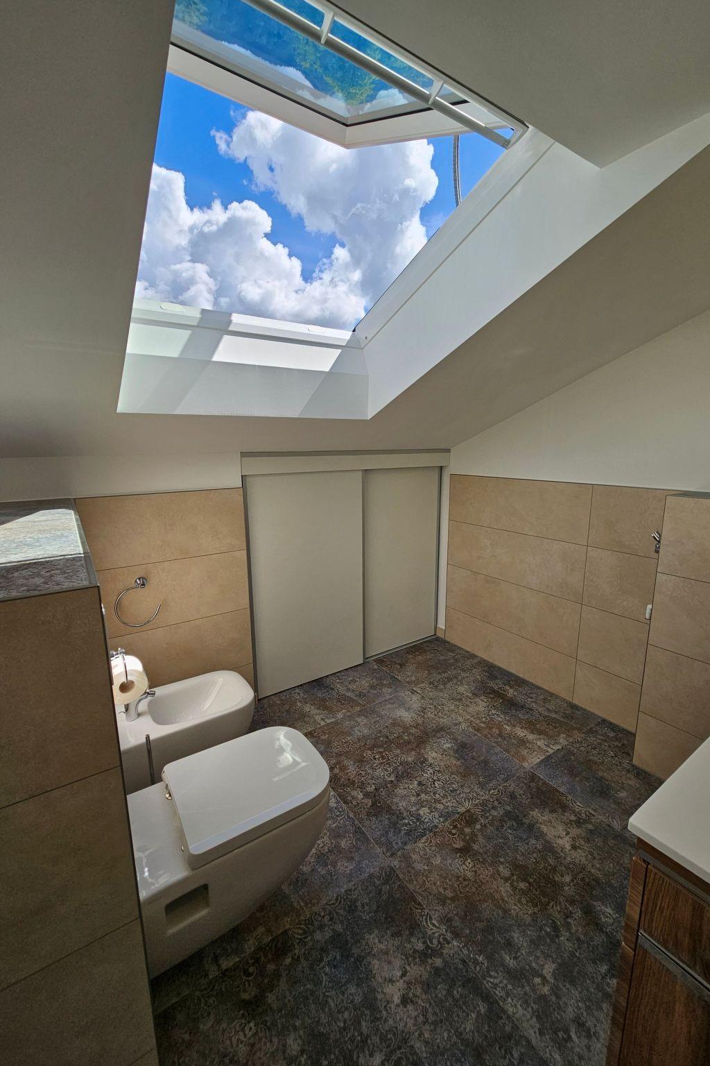 - Walk-in shower, exclusive Italian large-format bathroom tiles, large