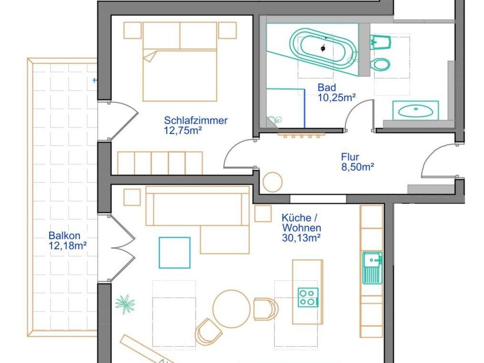 The new holiday flat (63m²) is flooded with light, modern and furnished to a high standard and offers space for 2 people.