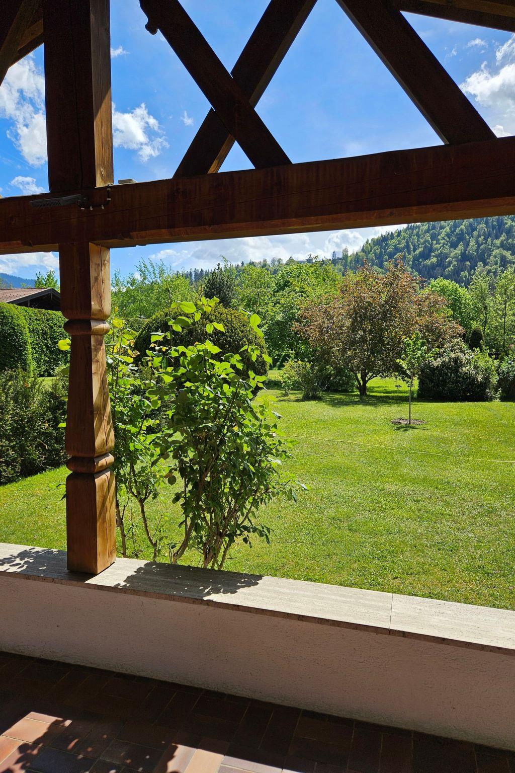 The cosy Bavarian country house bungalow is surrounded by flowers, trees and shrubs within a beautiful large garden area. It is located directly on the freshwater Weissach, about a 10-minute walk from Lake Tegernsee and offers a marvellous unobstructed view of the surrounding mountains of the Tegernsee valley.