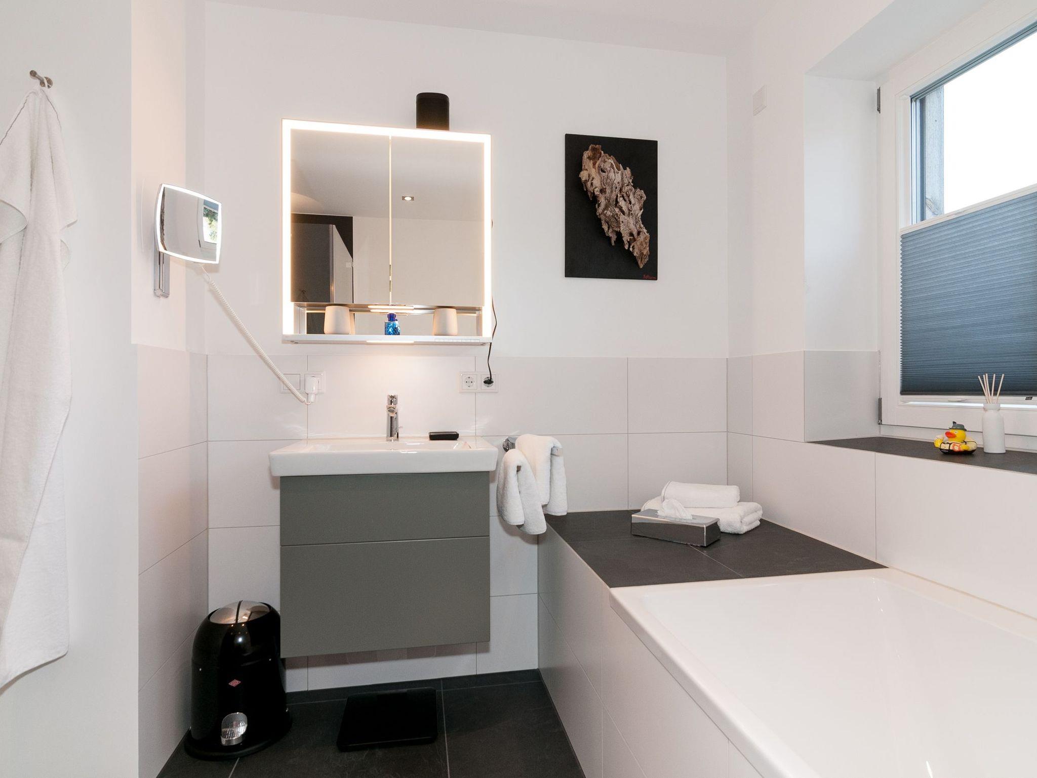 • Hochwertige Badezimmerausstattung mit Badewanne sowie Walk-in-Dusche mit Rainshower Duschkopf und separater Handbrause