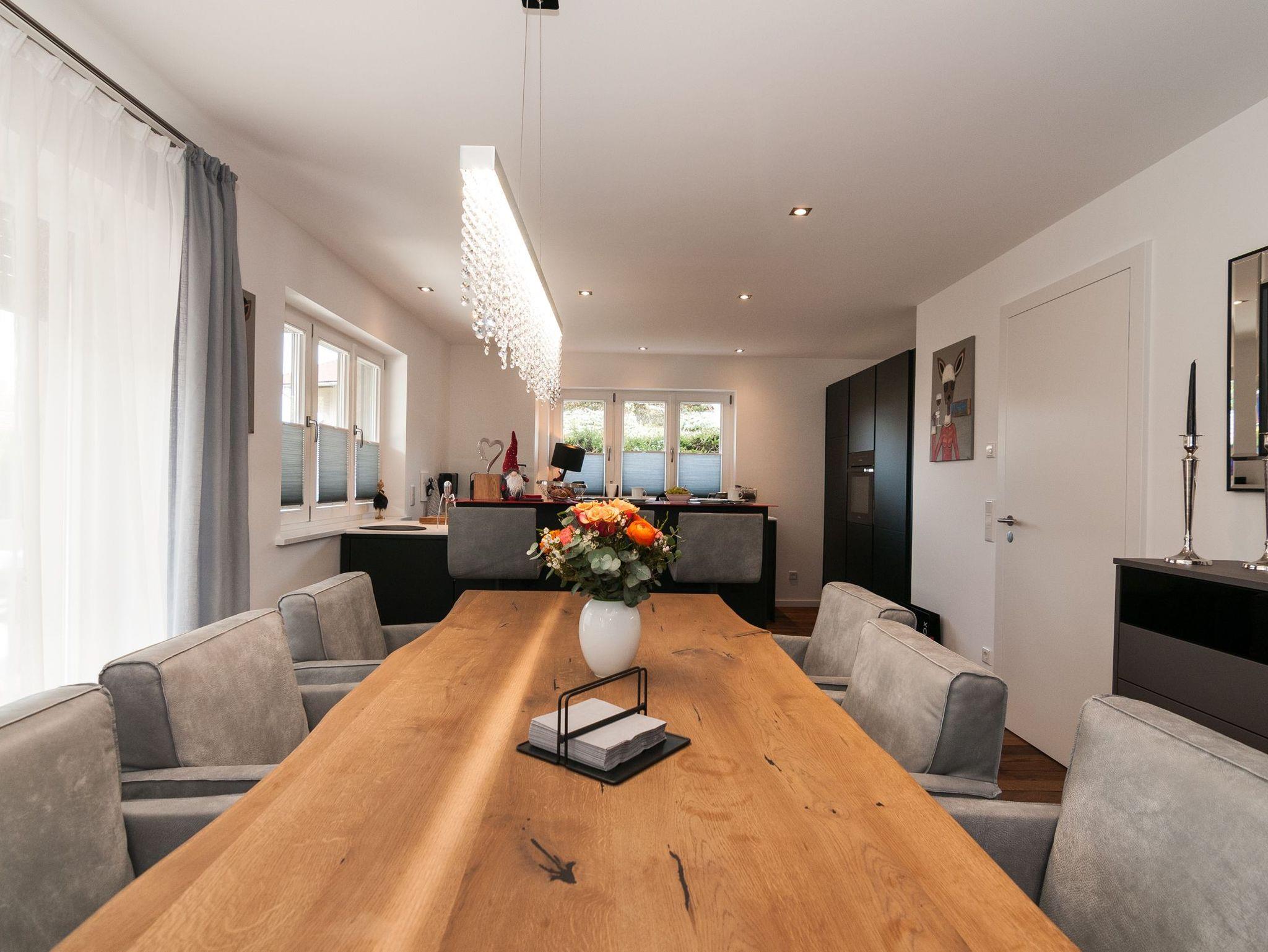 • Wohnzimmer mit Couch (kann auch als Schlafcouch genutzt werden) und großzügigem Essbereich
