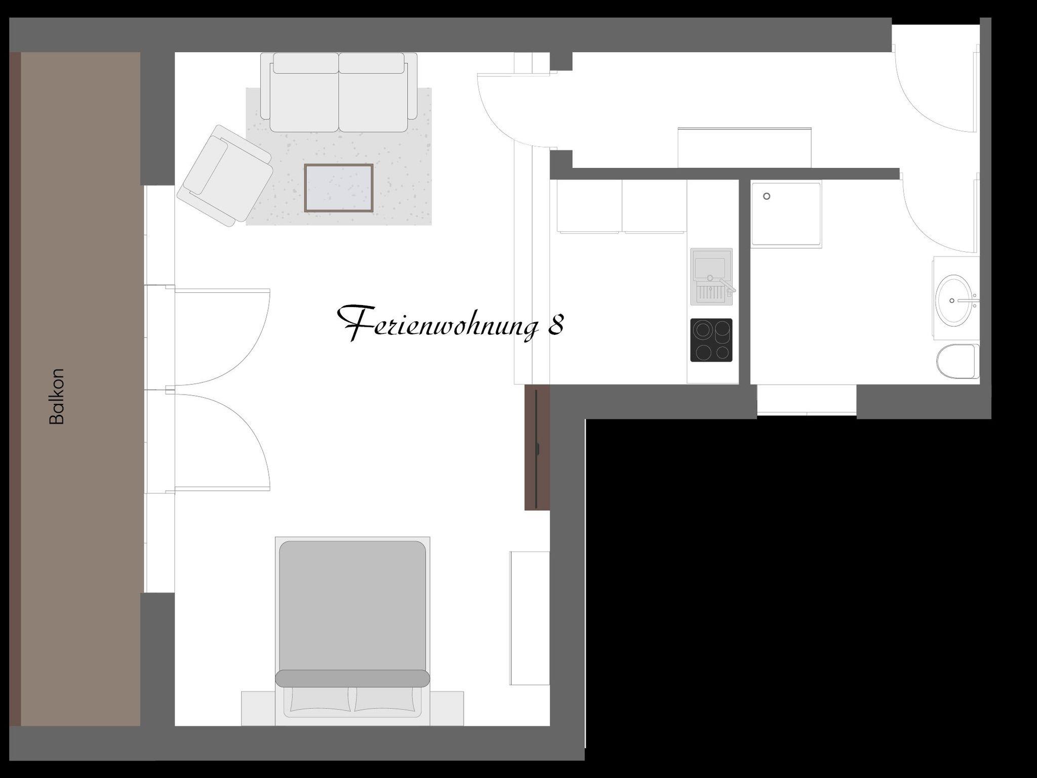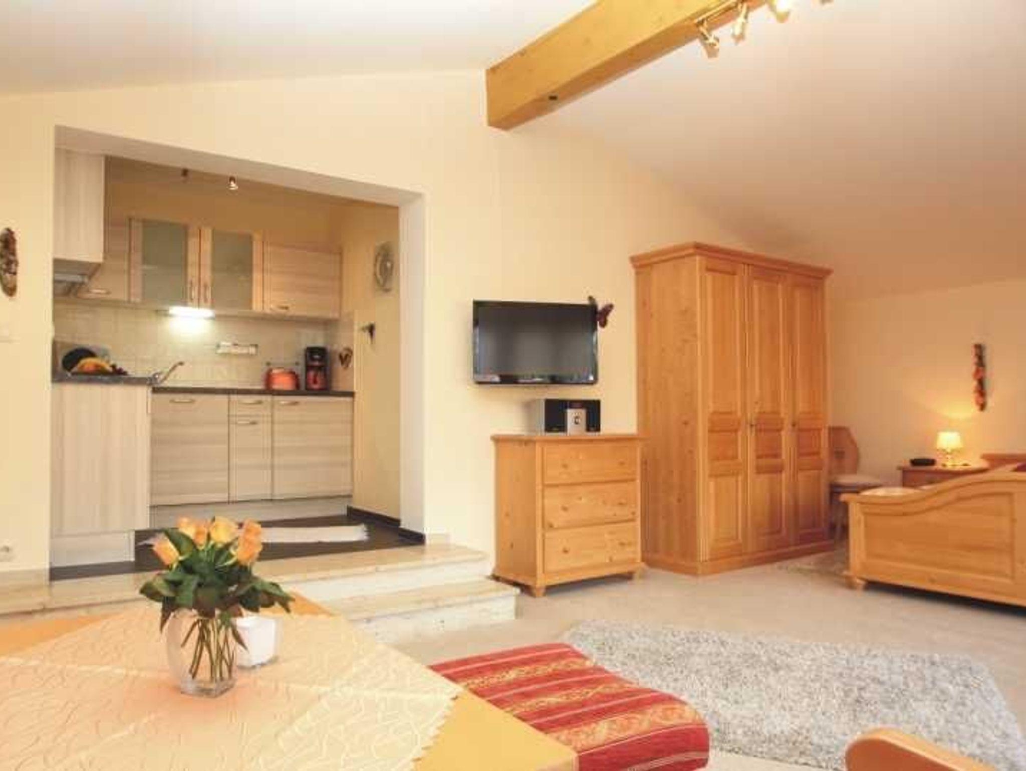 Ferienwohnung im 1. Stock mit Wohn-/ Schlafzimmer, Küche, Bad / WC, Kabel - TV, Balkon. (46 qm)