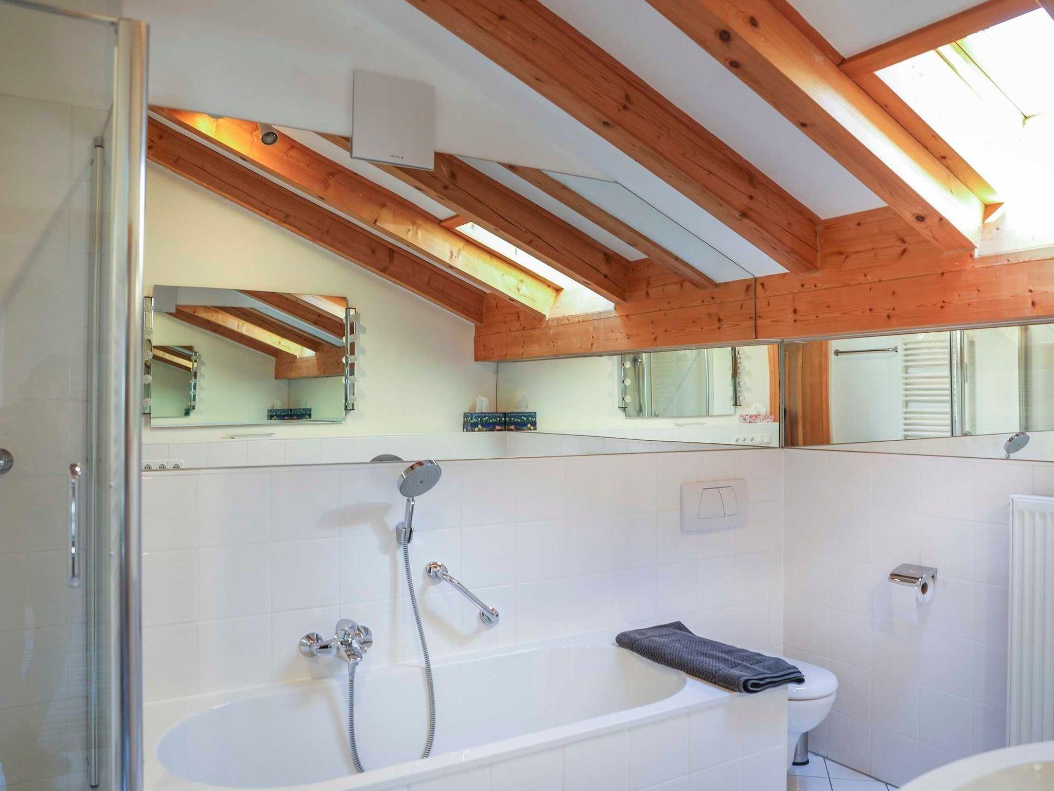 • Das zweite Badezimmer hat ein abgetrenntes WC, neben der Dusche gibt es eine Waschmaschine und einen Wäschetrockner.