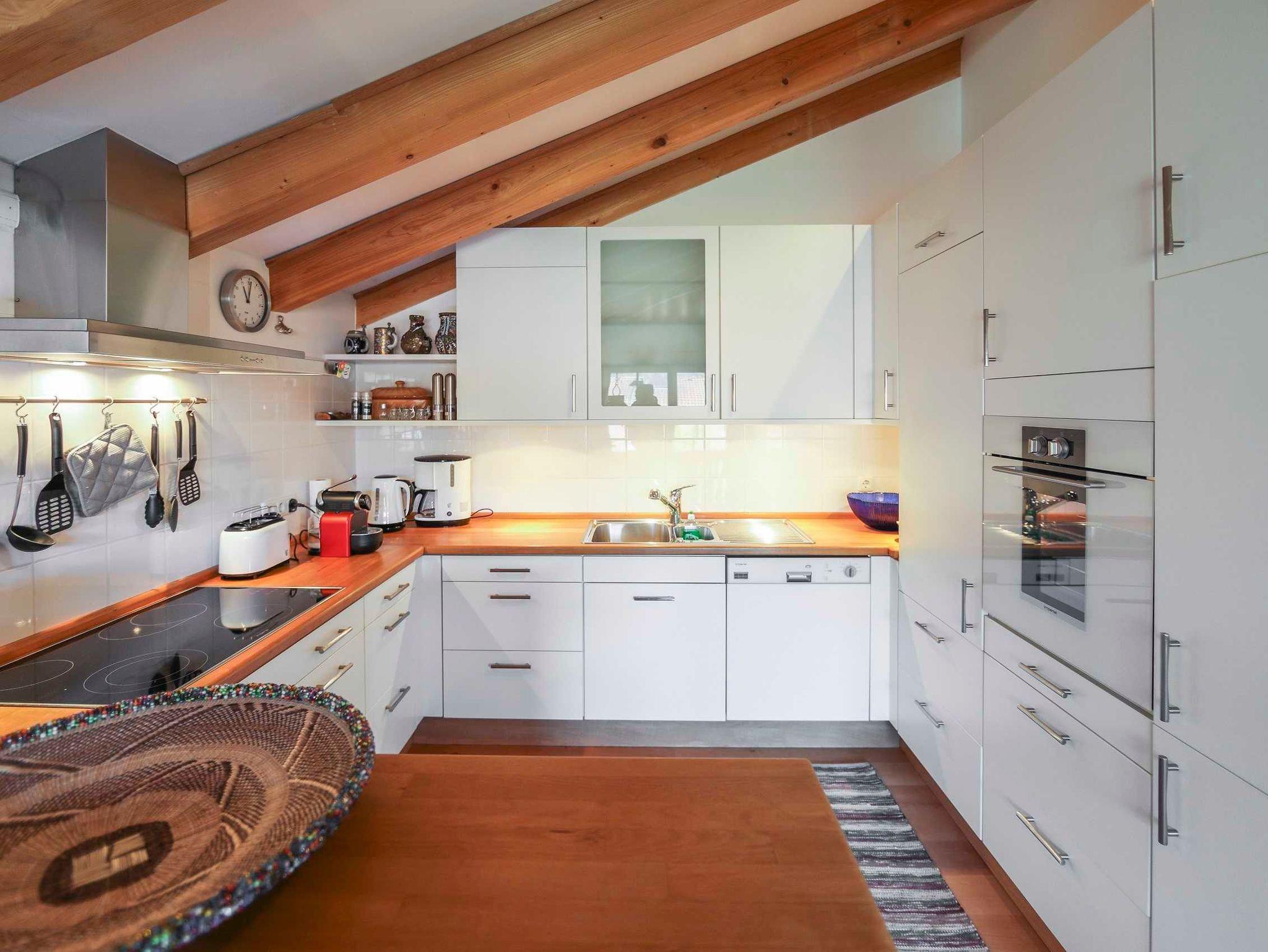 • Die grosszügige Küche ist komplett ausgestattet. Dazu gehören Kühlschrank, Tiefkühler, Backofen, Spülmaschine und Nespresso Kaffeemaschine, Milchschäumer, Mixer, Wasserkocher, Toaster.
