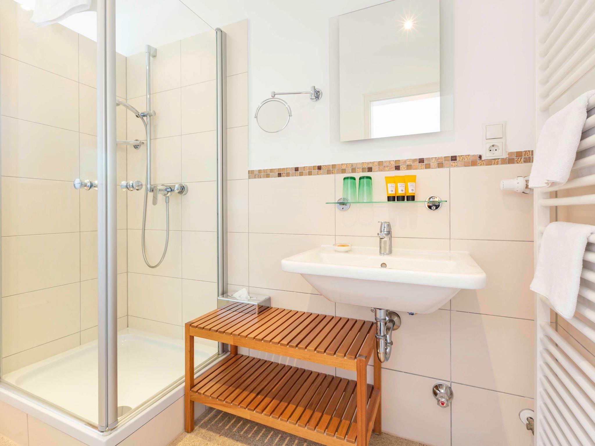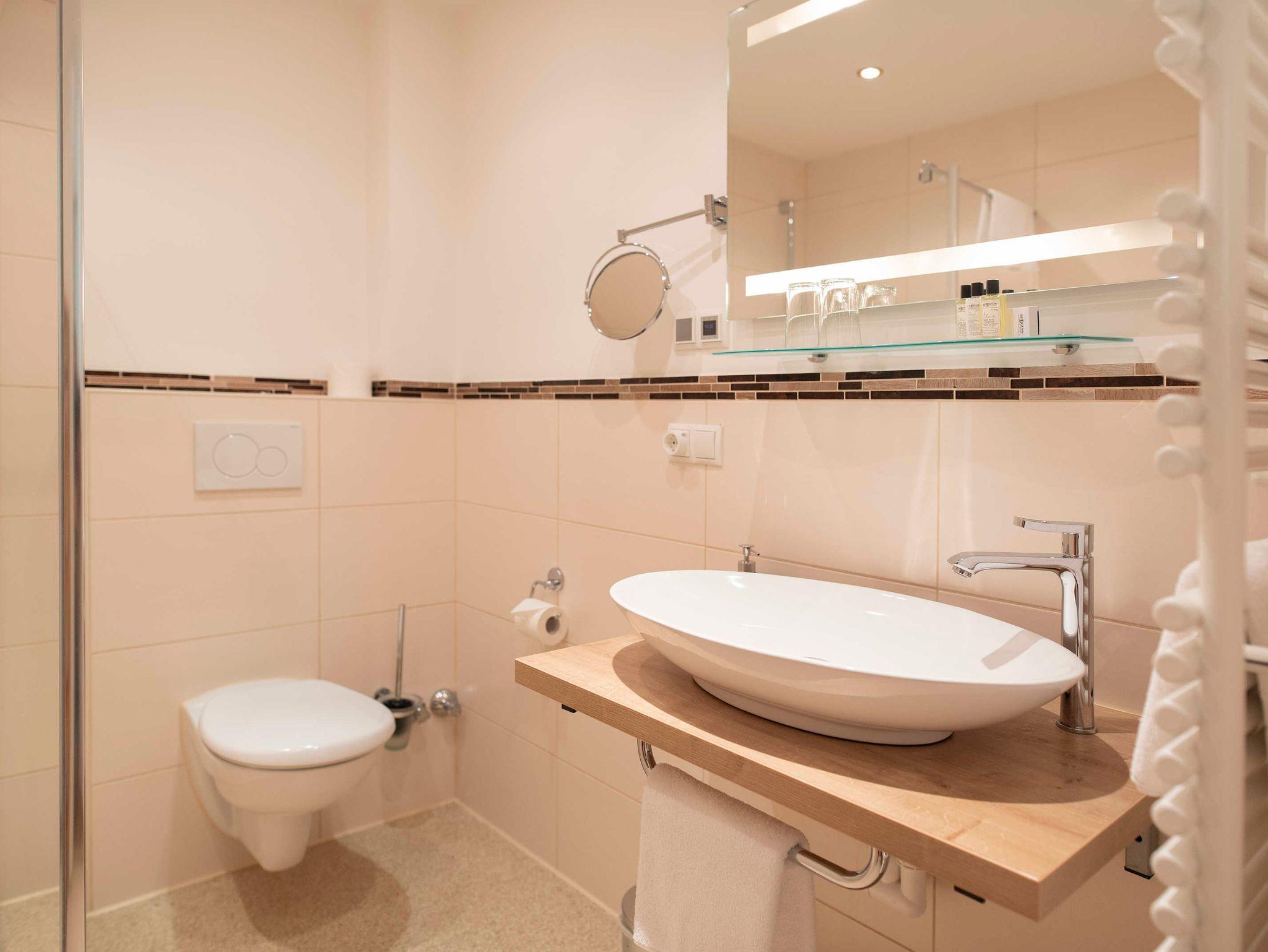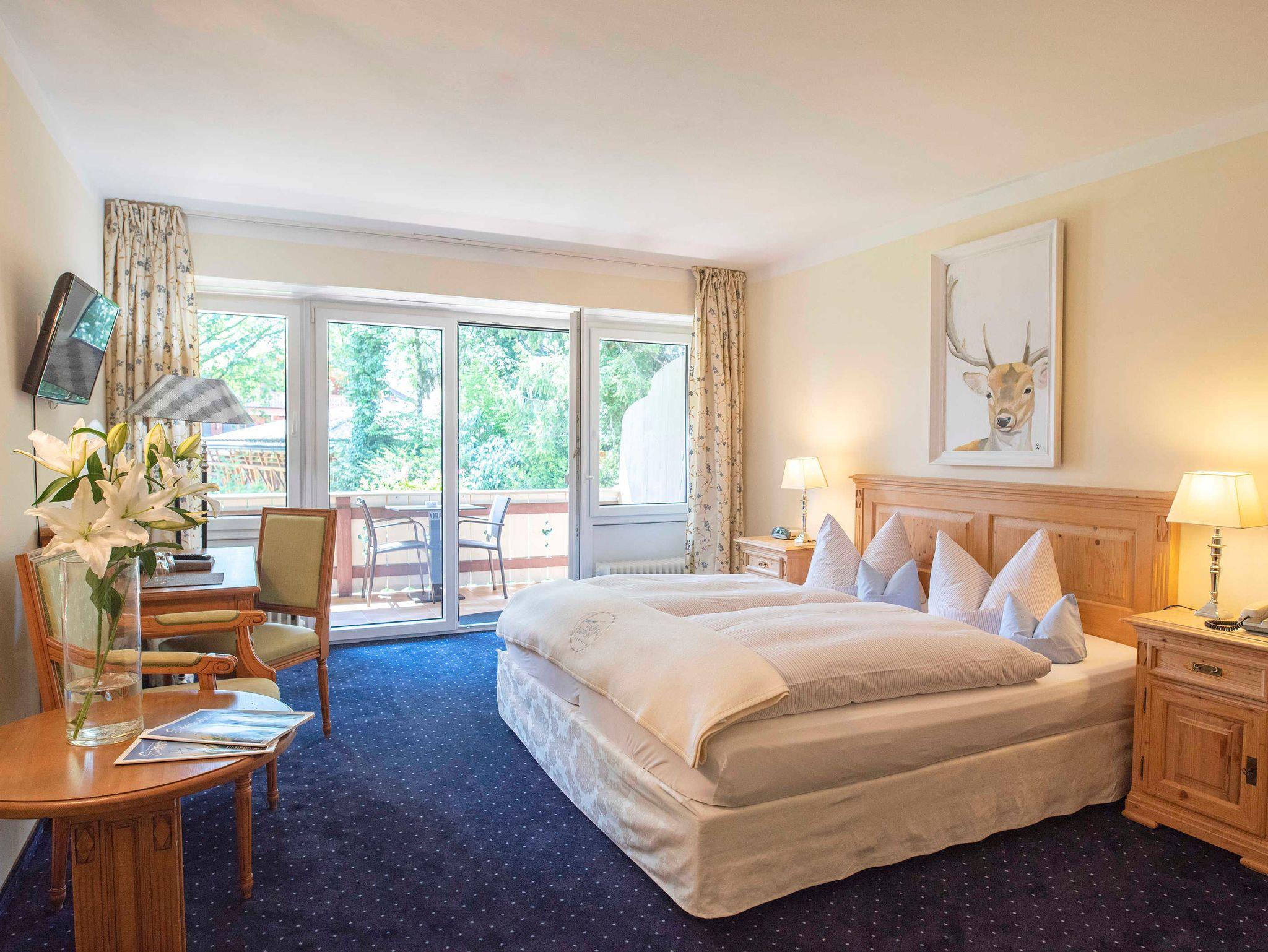Helle, renovierte Zimmer im modernen Landhausstil. Balkon oder Terasse, saniertem Bad, Bett 180 cm, Flatscreen, Sessel, Tisch bzw. Sekretär, W-LAN, Nichtraucher.
