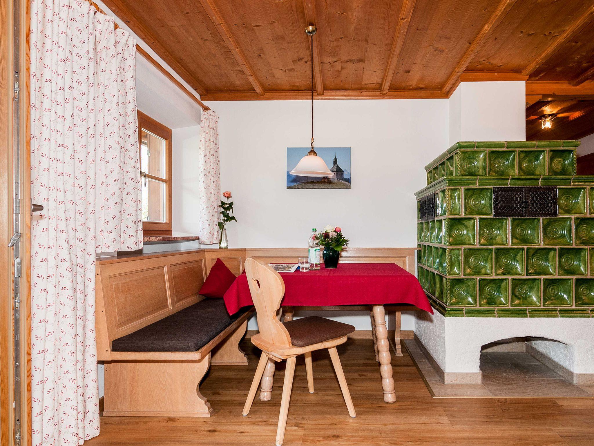 Die Ferienwonungen befindet sich im 1. Stock, sind mit Dusche und Bad/WC, zwei Schlafräumen, Wohnküche, Kachelofen, TV, Telefon, Radio und Safe ausgestattet.