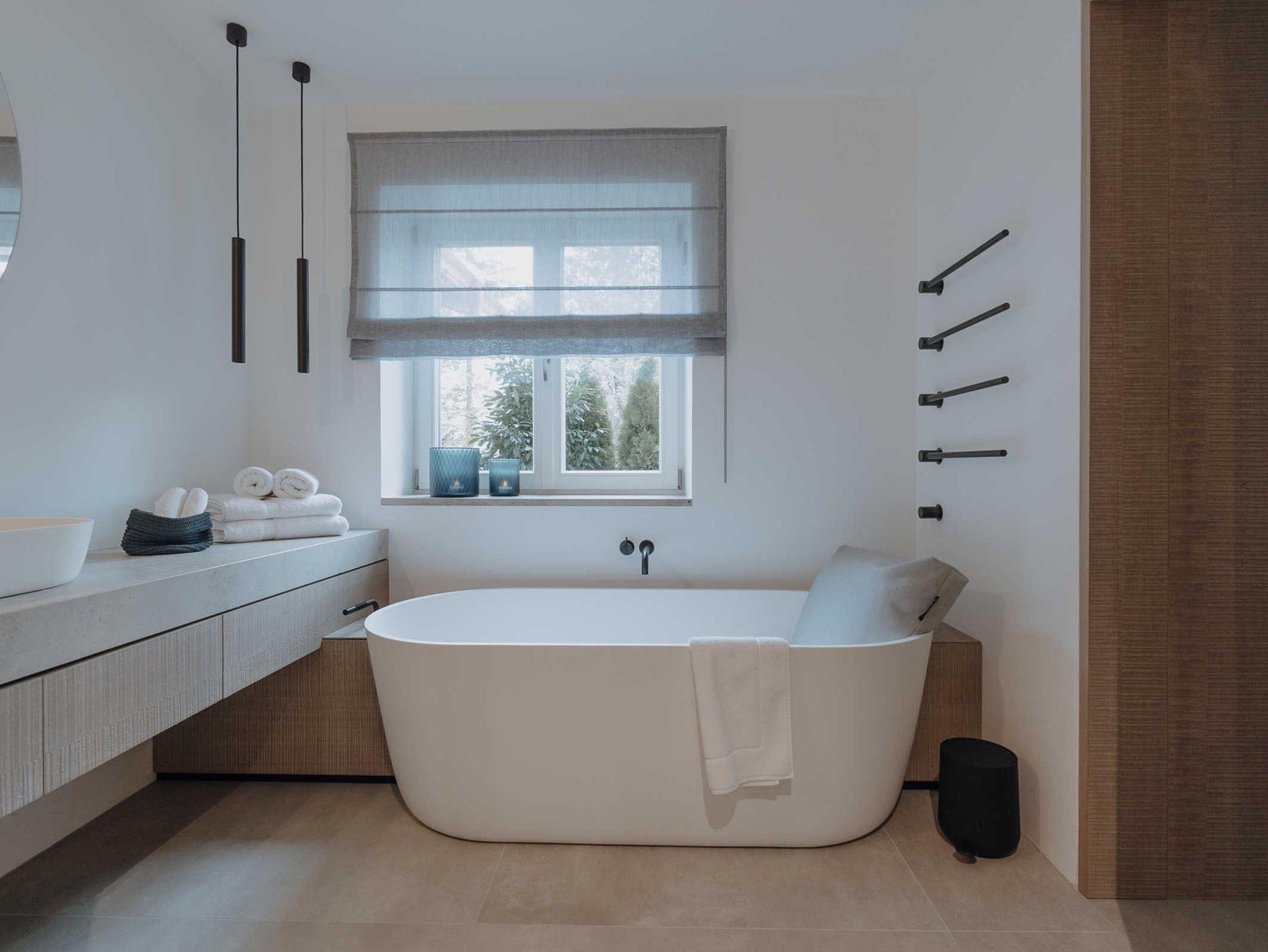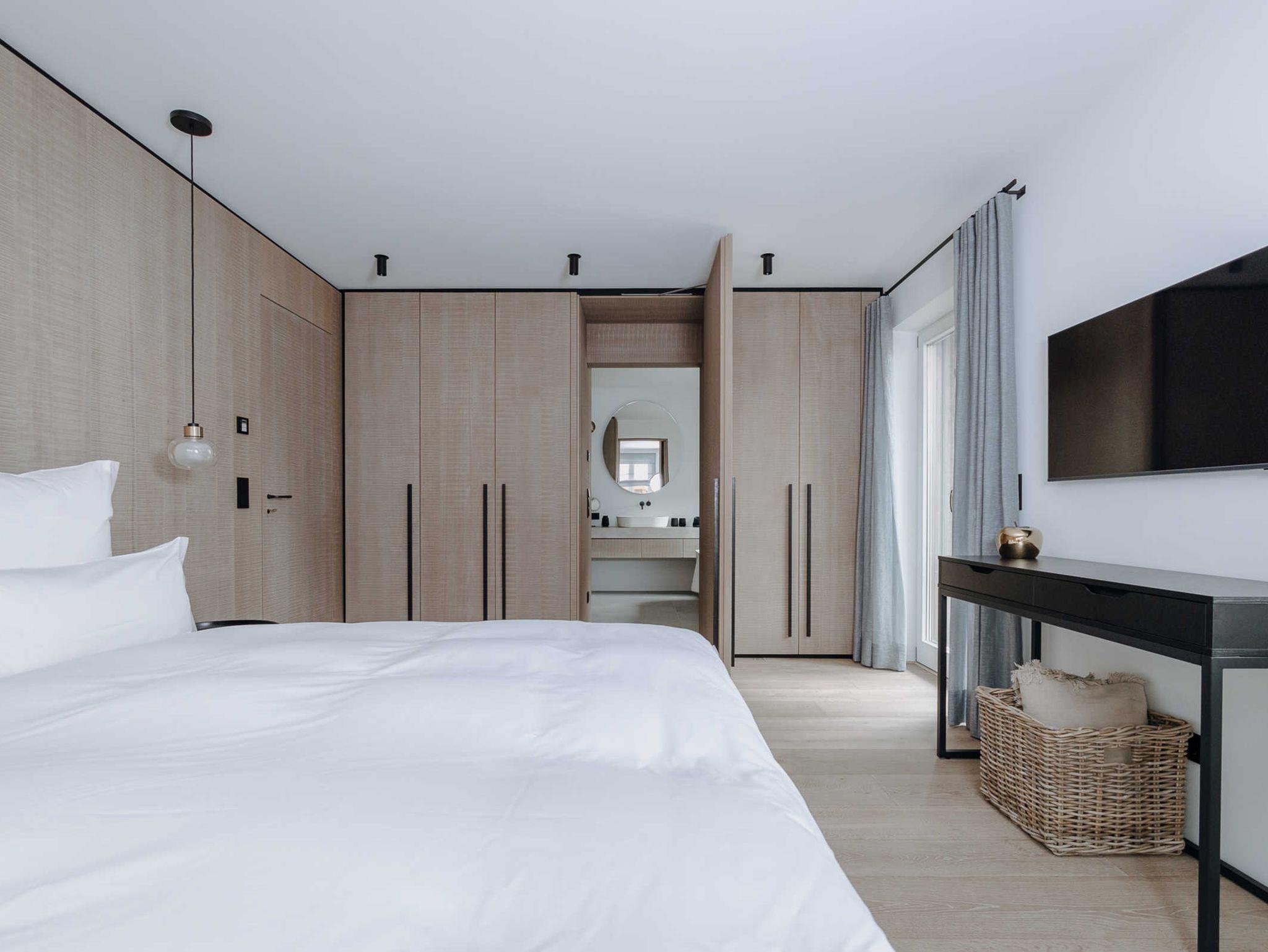 • Im großen Master Schlafzimmer bietet das hochwertige Boxspringbett von Schramm Werkstätten (180x200cm) zusammen mit der edlen Bettwäsche höchsten Schlafkomfort. Sie haben direkten Zugang ins wunderschöne Bad en Suite.