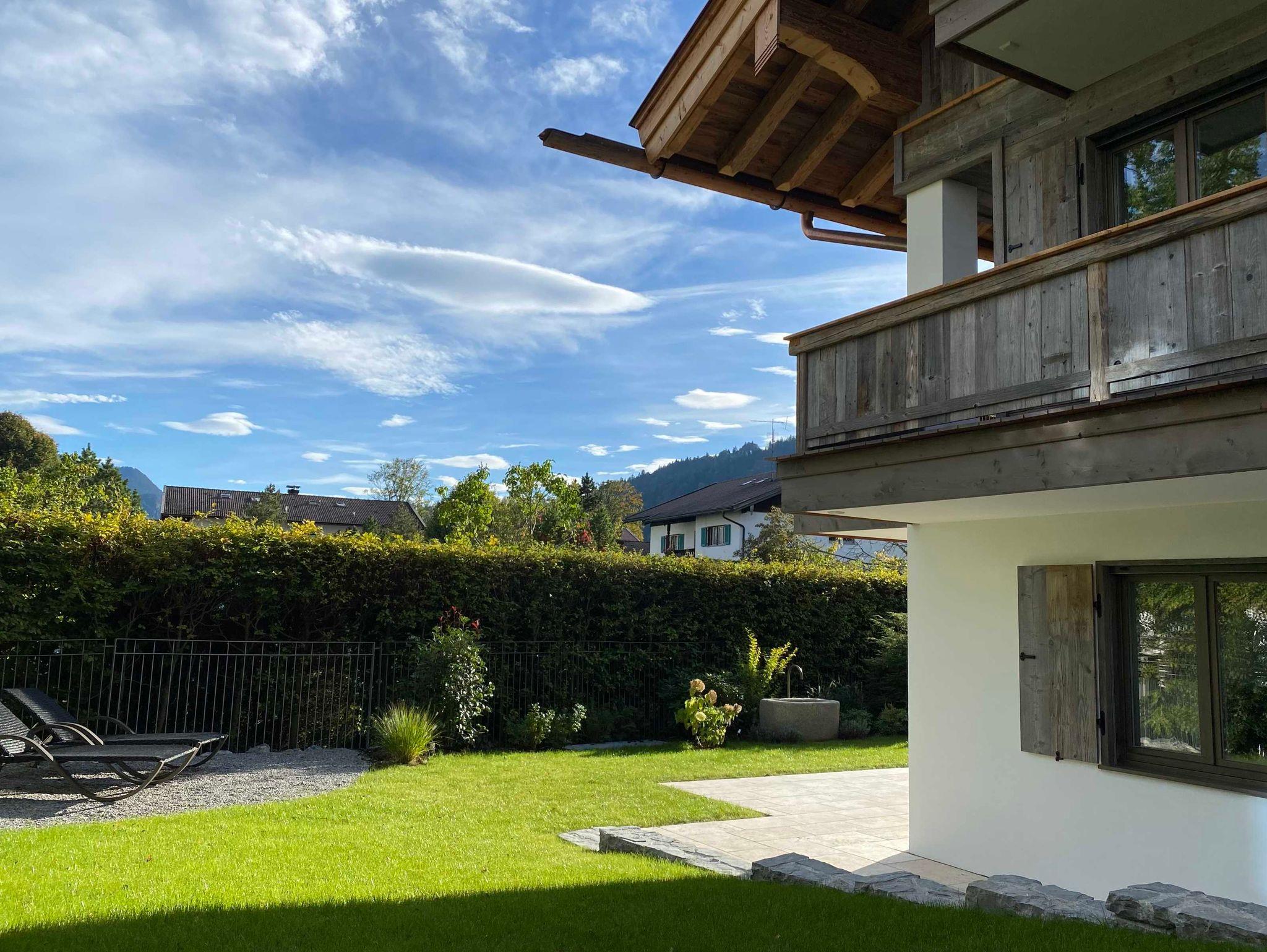 Der hübsch angelegte Garten bietet Ihnen Sonne und Ruhe. Sie blicken Richtung Wallberg und Ringbergschloß.