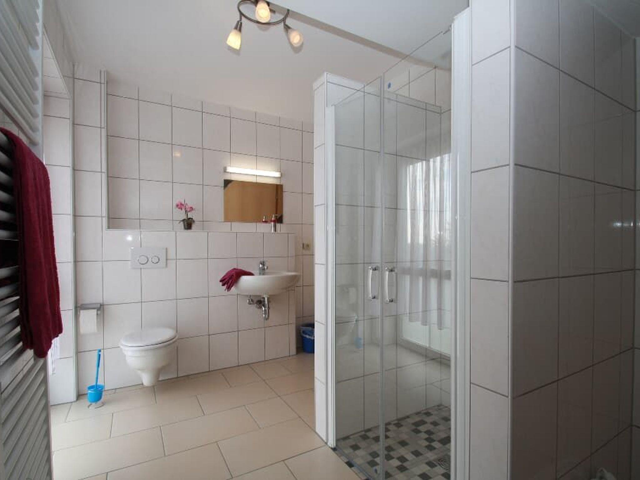 Im großzügigen Badezimmer befinden sich Dusche/WC/Waschbecken.
