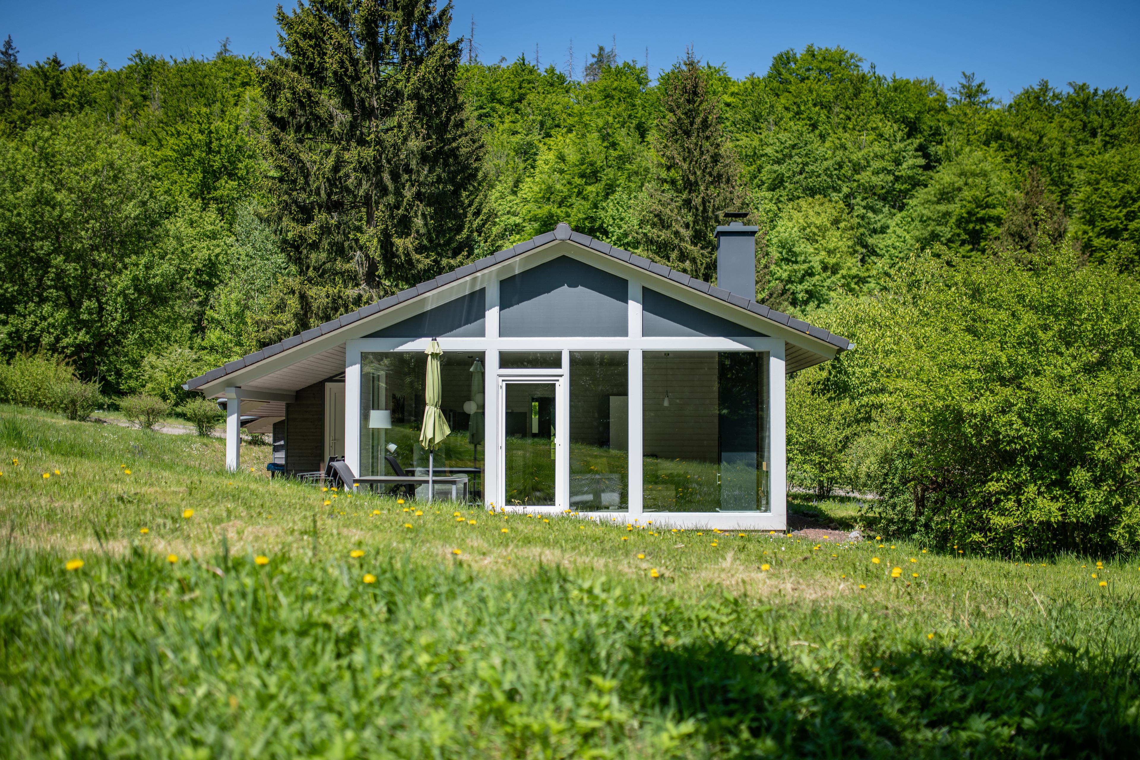 Das Ferienhaus mit einem lichtdurchluteten offenen Wohn- und Küchenbereich, zwei Schlafzimmern und einem Wellness-Bad mit Sauna bietet Ihnen auf 70 Quadratmetern ausreichend Platz für 4 Personen. Die 7 Meter breite Glasfront lässt die Natur beim Essen oder Relaxen teilhaben. In der kalten Jahreszeit vollendet das knisternde Kaminfeuer das Urlaubsfeeling.