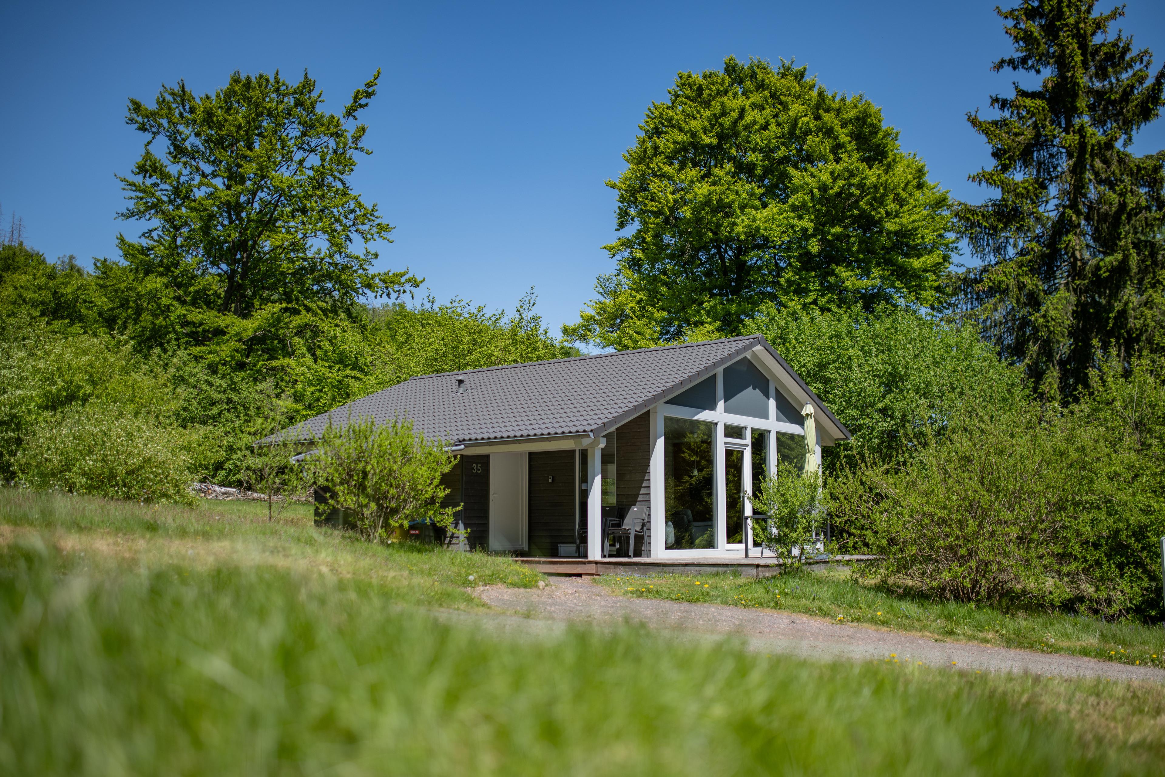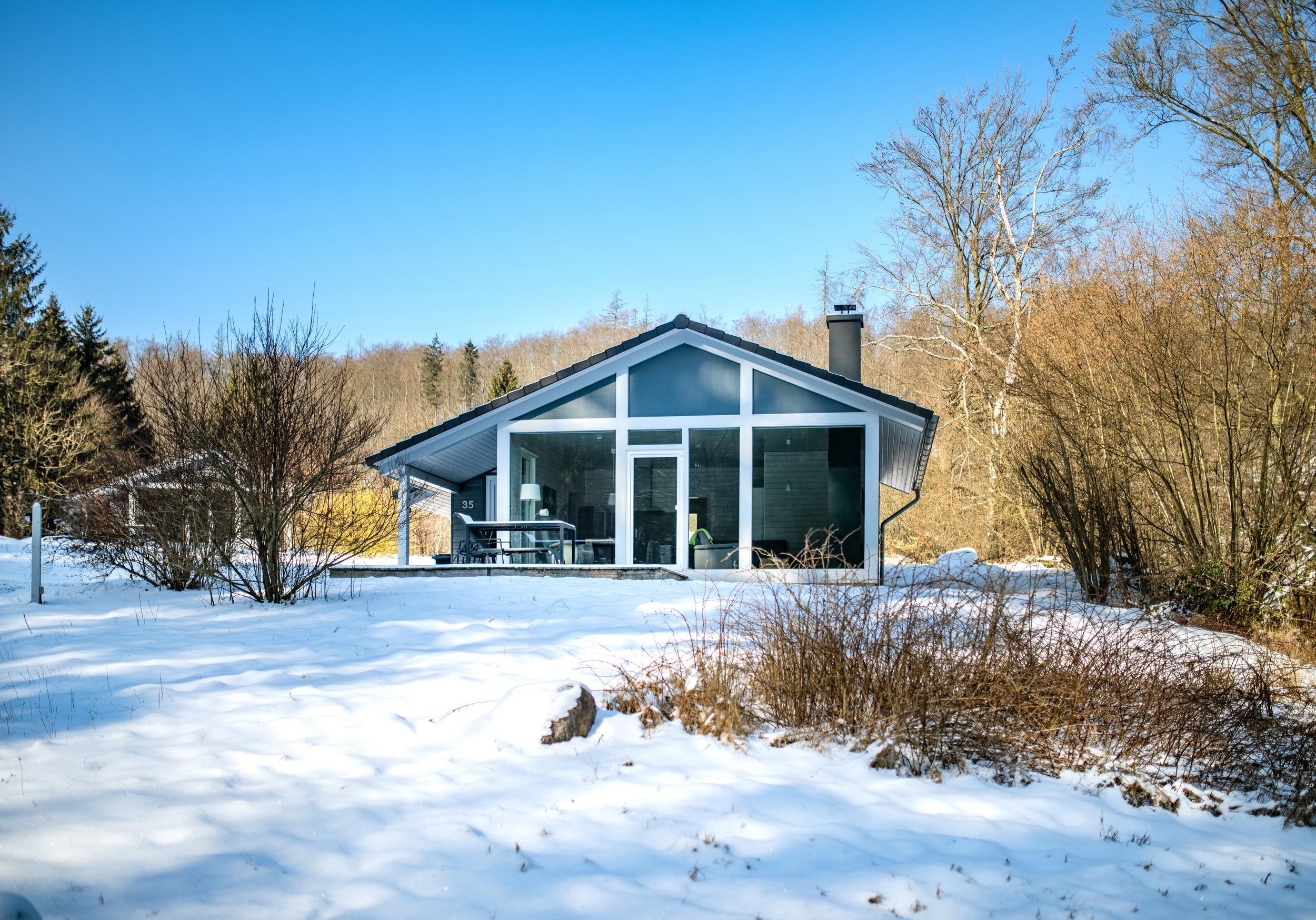 Das Ferienhaus mit einem lichtdurchfluteten offenen Wohn- und Küchenbereich, einem Schlafzimmer und einem Wellness-Bad mit Sauna bietet Ihnen auf 61 Quadratmetern großzügigen Platz für 2 Personen. Die 7 Meter breite Glasfront lässt die Natur beim Essen oder Relaxen teilhaben. In der kalten Jahreszeit vollendet das knisternde Kaminfeuer das Urlaubsfeeling.