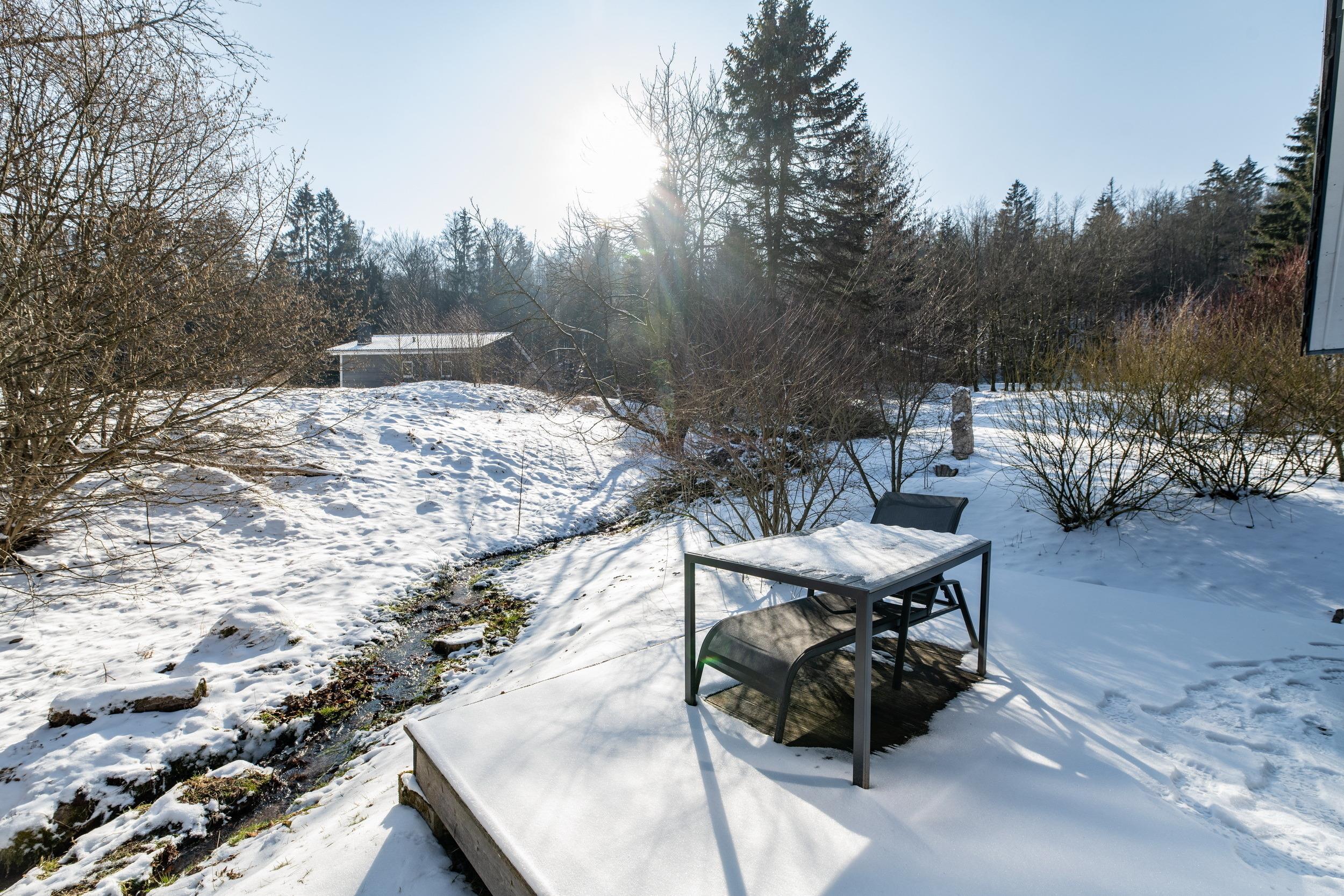 Das Ferienhaus mit einem lichtdurchluteten offenen Wohn- und Küchenbereich, zwei Schlafzimmern und einem Bad bietet Ihnen auf 61 Quadratmetern ausreichend Platz für 4 Personen. Die 7 Meter breite Glasfront lässt die Natur beim Essen oder Relaxen teilhaben. In der kalten Jahreszeit vollendet das knisternde Kaminfeuer das Urlaubsfeeling.